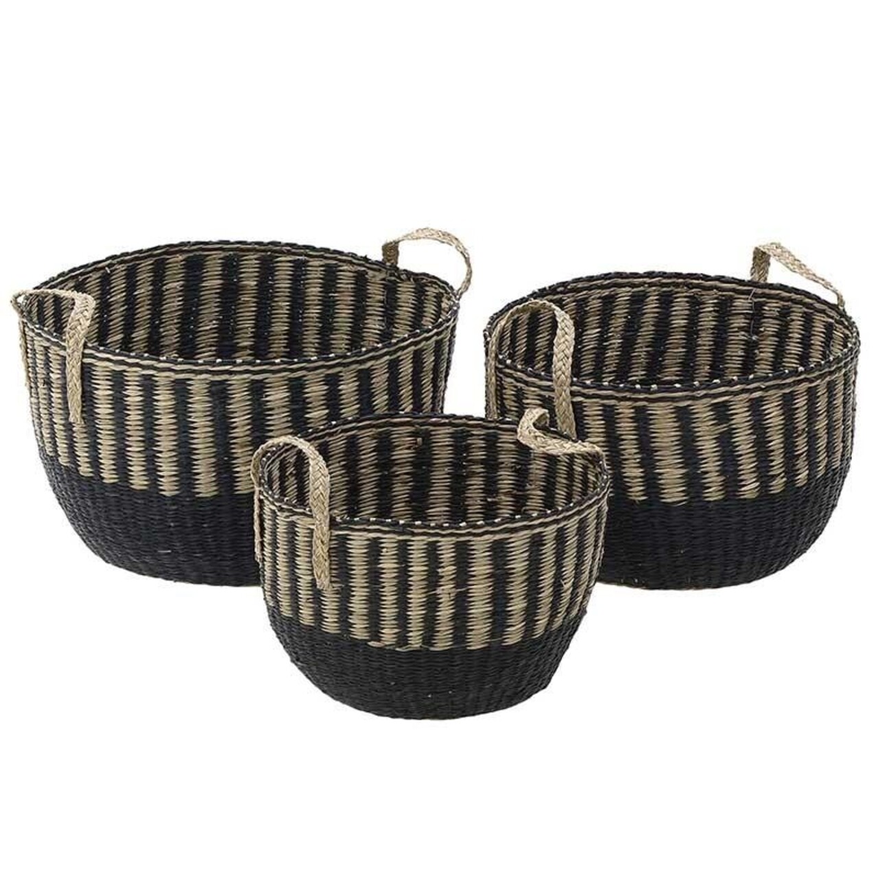 Set 3 cosuri de depozitare, InArt, fibra de alge, negru/bej