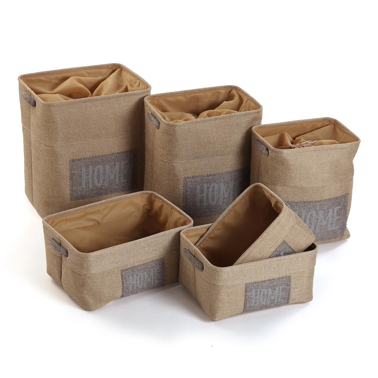 Set 3 cosuri de rufe si 3 cosuri pentru depozitare Home, Versa, 45 x 30 x 40 cm, textil, bej