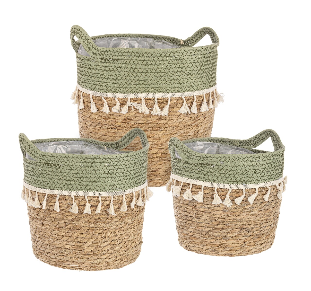 Set 3 cosuri pentru depozitare Bridget, Bizzotto, Ø 32 x 35 cm, iarba uscata/hartie, verde/natural