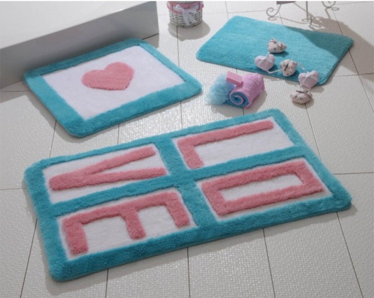 Set 3 covorase de baie, Chilai, Love - Turquoise