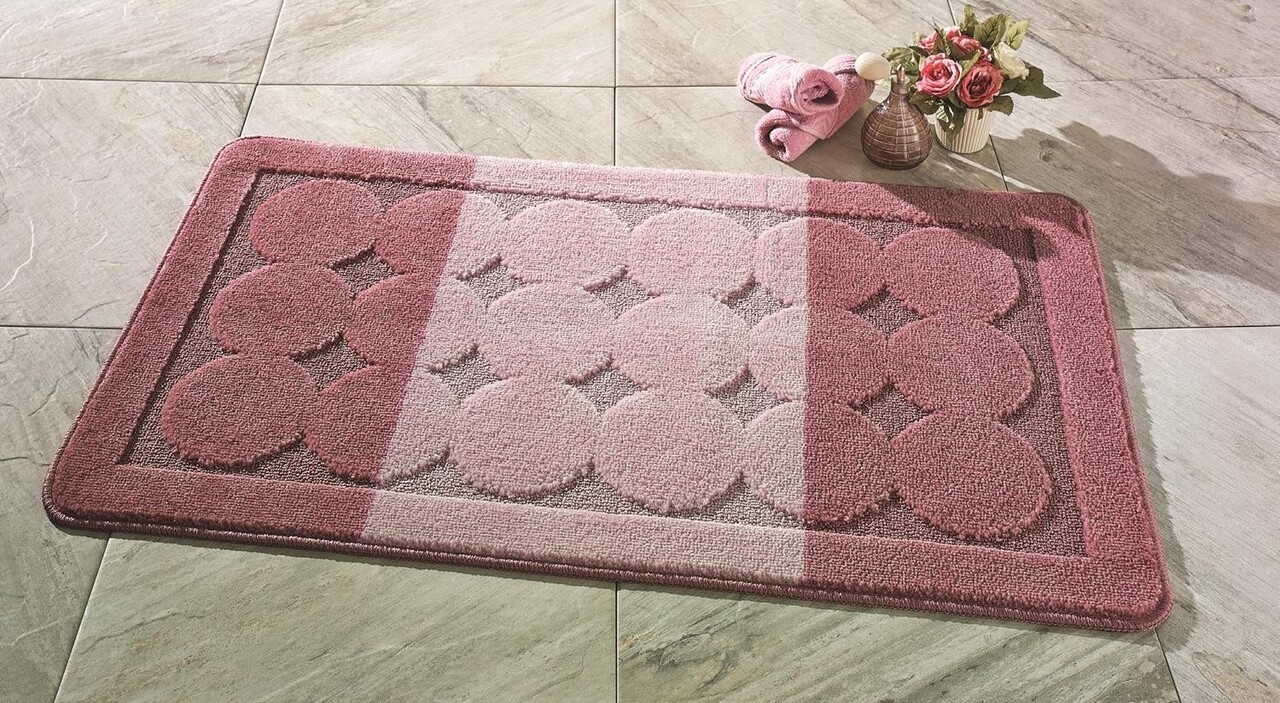 Set 3 covorase de baie Edremit, Confetti, 47x50 cm/50x60 cm/60x100 cm, roz