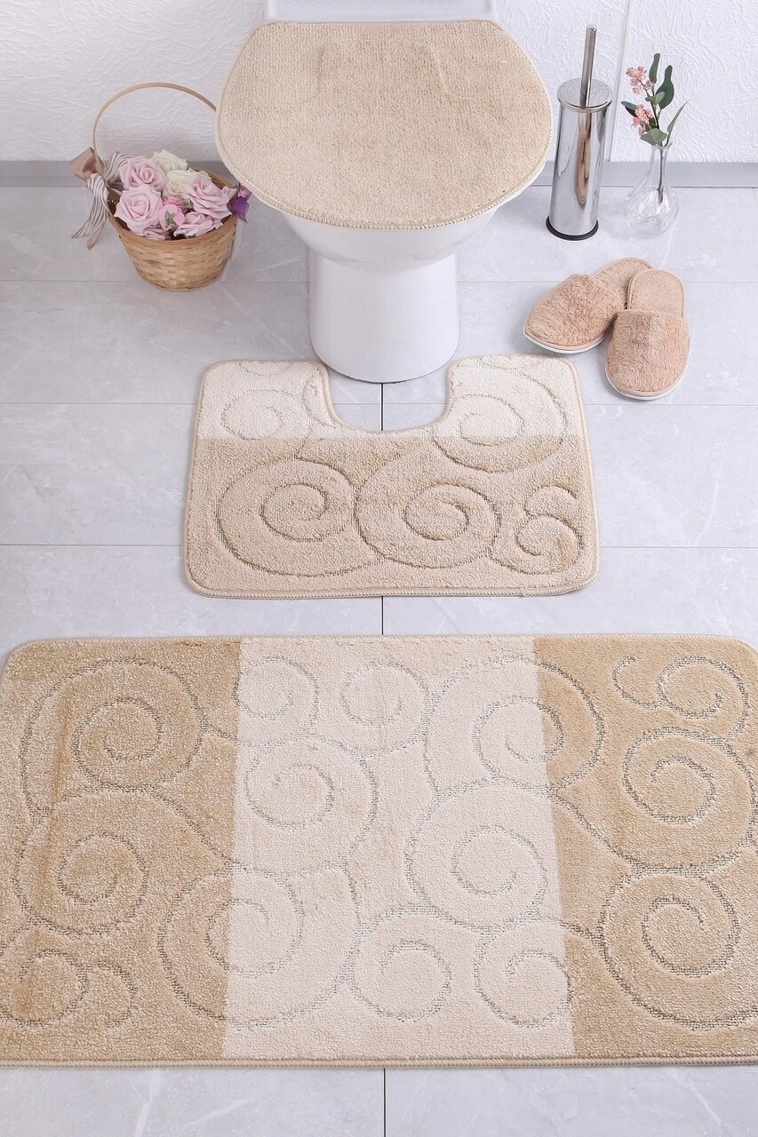 Set 3 covorase de baie Şile, Confetti, 47x50 cm/50x60 cm/60x100 cm, bej