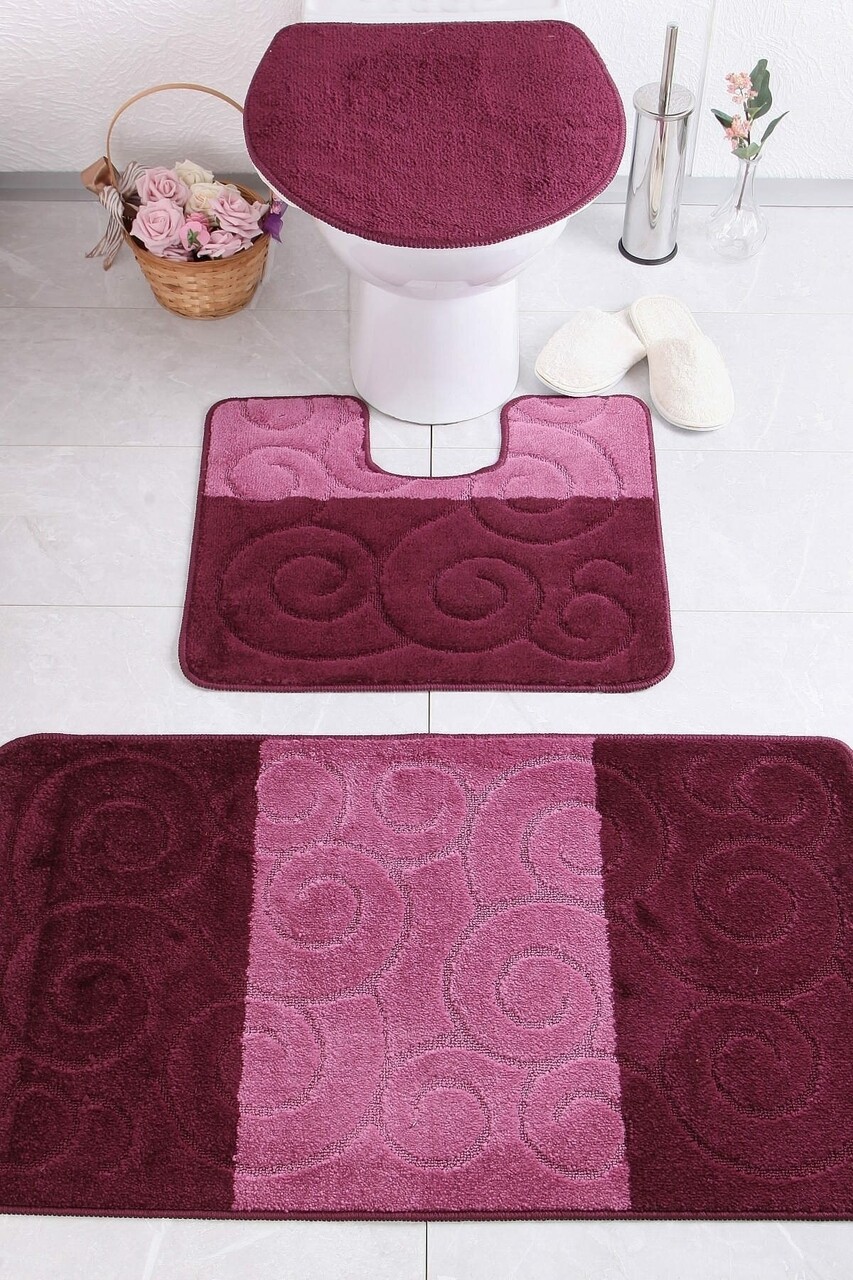 Set 3 covorase de baie Şile, Confetti, 47x50 cm/50x60 cm/60x100 cm, mov