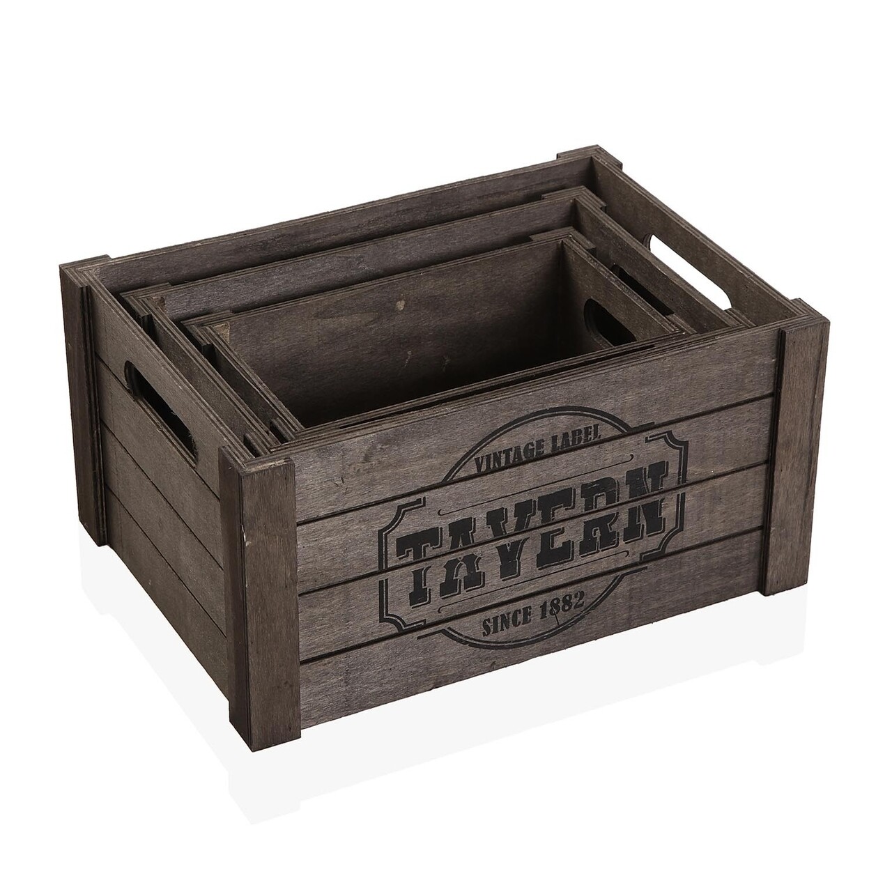Set 3 cutii de depozitare Tavern Vintage, Versa, 35x25x17 cm, lemn