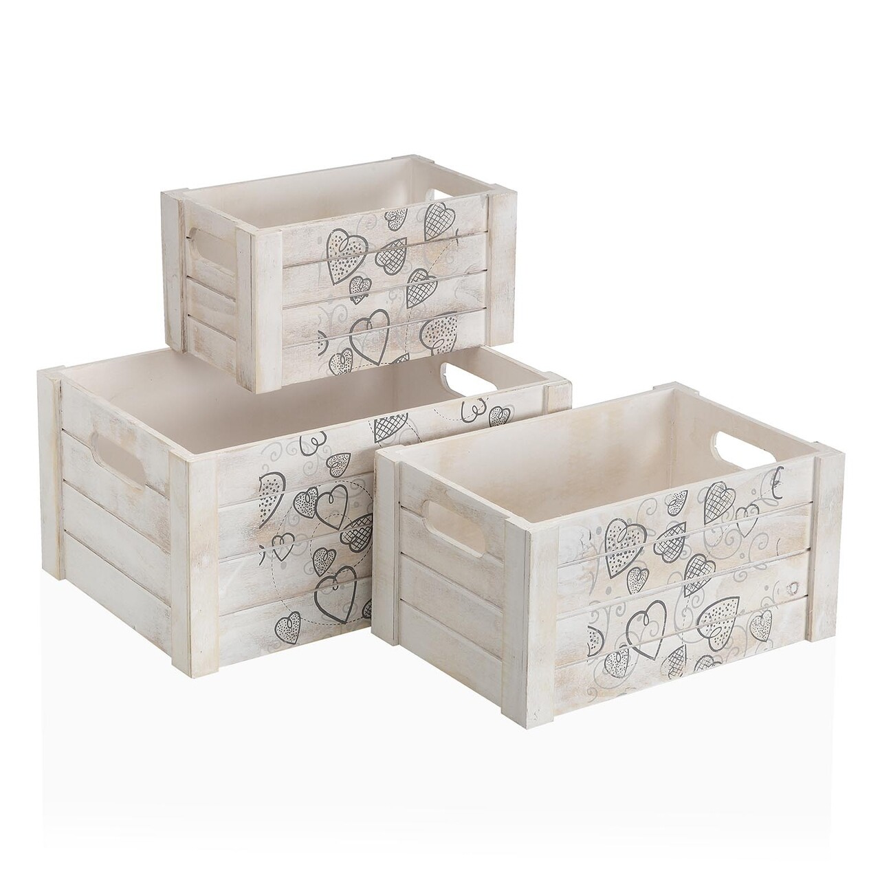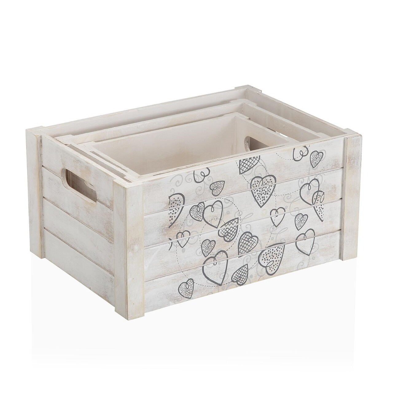 Set 3 cutii pentru depozitare Cozy Hearts, Versa, 40 x 28 x 15 cm, lemn