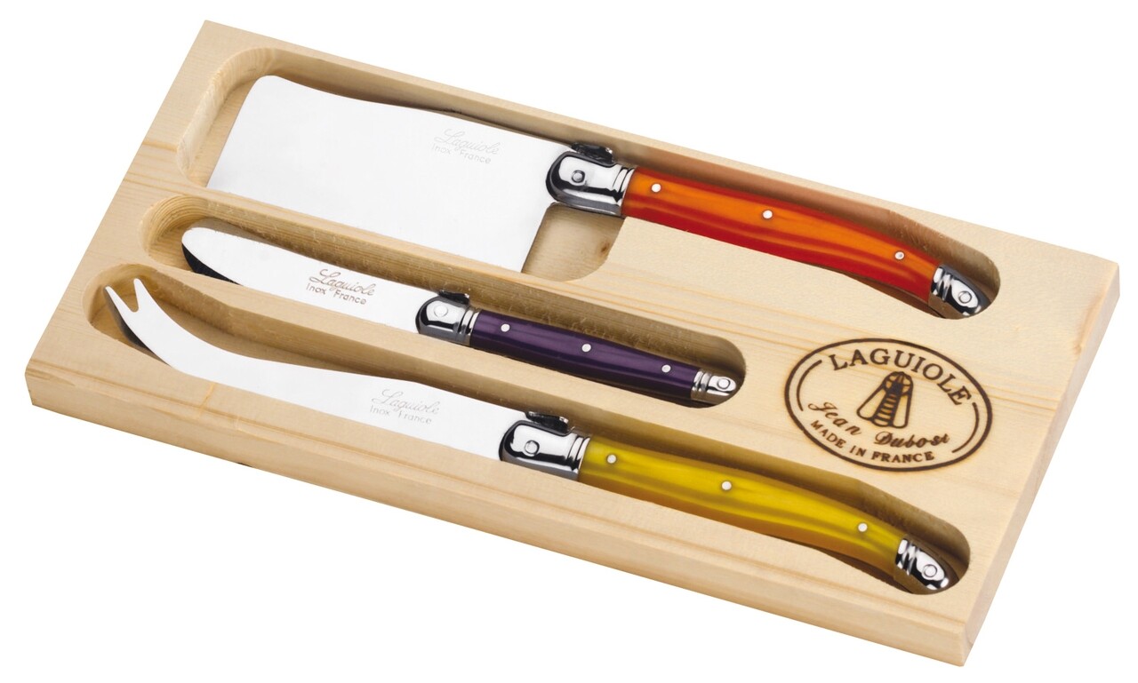 Set 3 cutite pentru branzeturi cu suport Laguiole, Jean Dubost, inox/lemn, multicolor