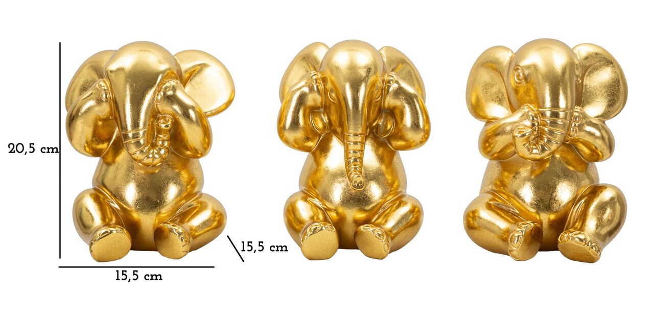Set 3 decoratiuni Elephant, Mauro Ferretti, 15.5x20.5 cm, polirasina, auriu