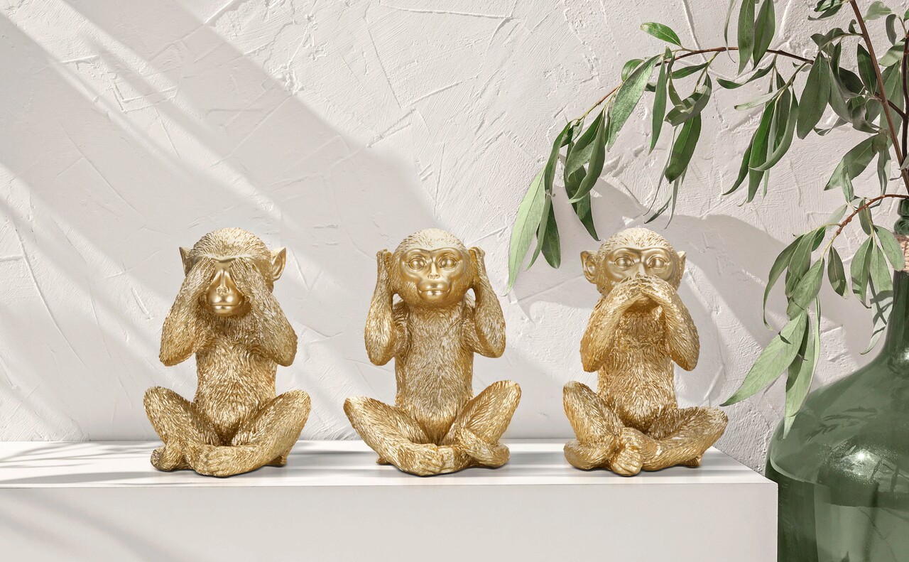 Set 3 decoratiuni Monkey, Mauro Ferretti, 13x14x19.5 cm, polirasina, auriu