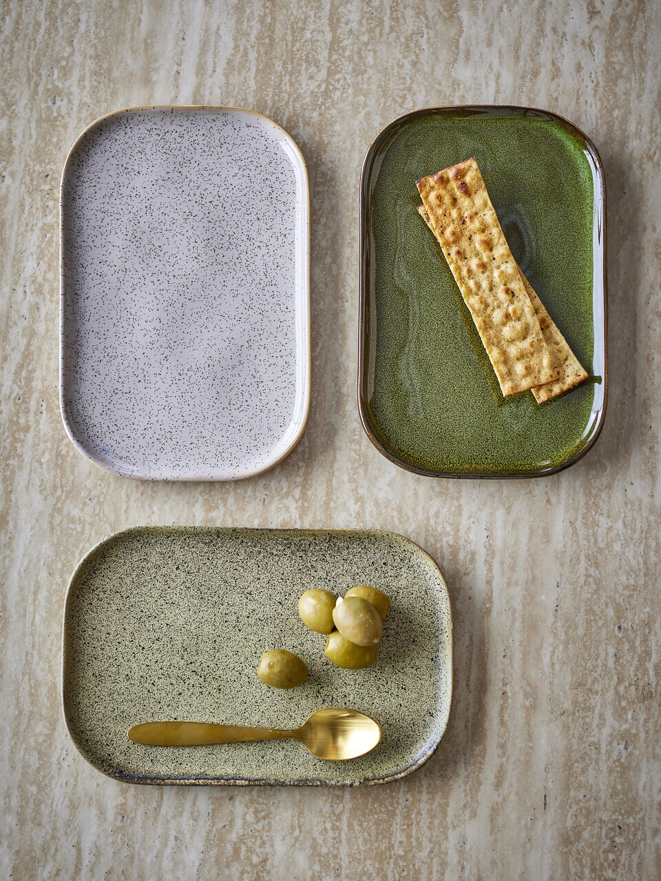Set 3 farfurii desert, Bloomingville, Addison, 22.5x14.5x1.5 cm, ceramica, verde