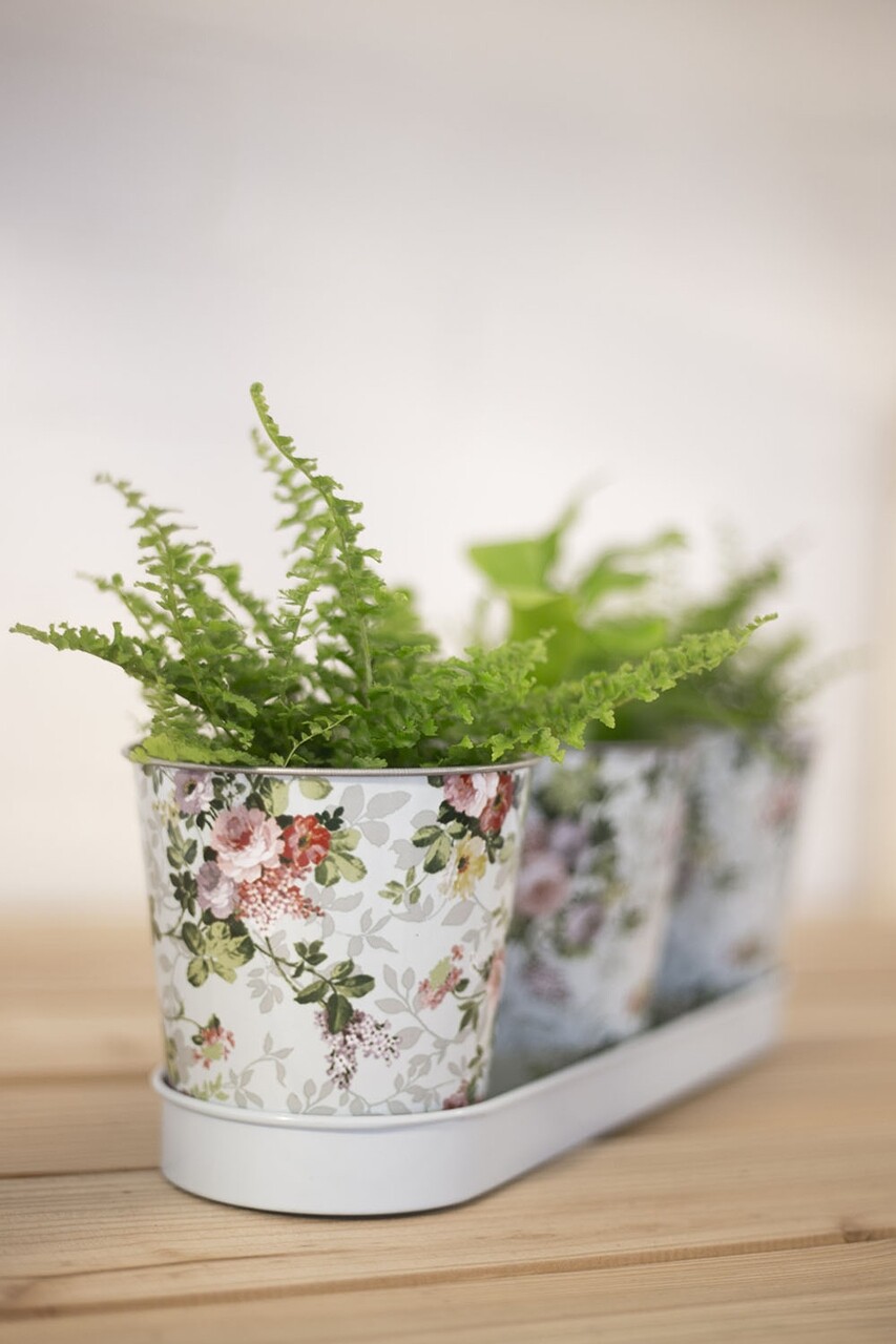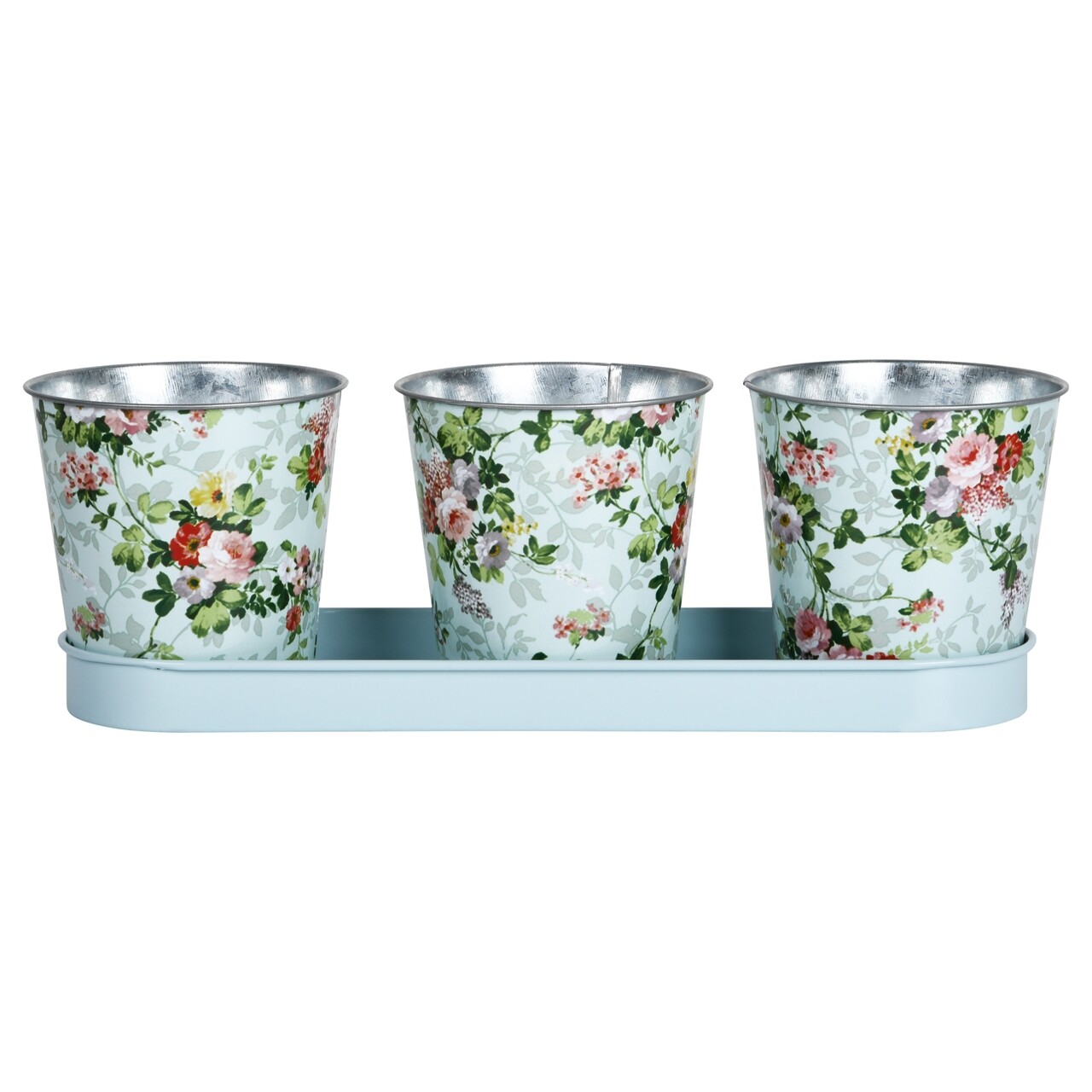Set 3 ghivece in tavita, Esschert, Rose, 10.6 x 32 x 10.9 cm, otel galvanizat, multicolor