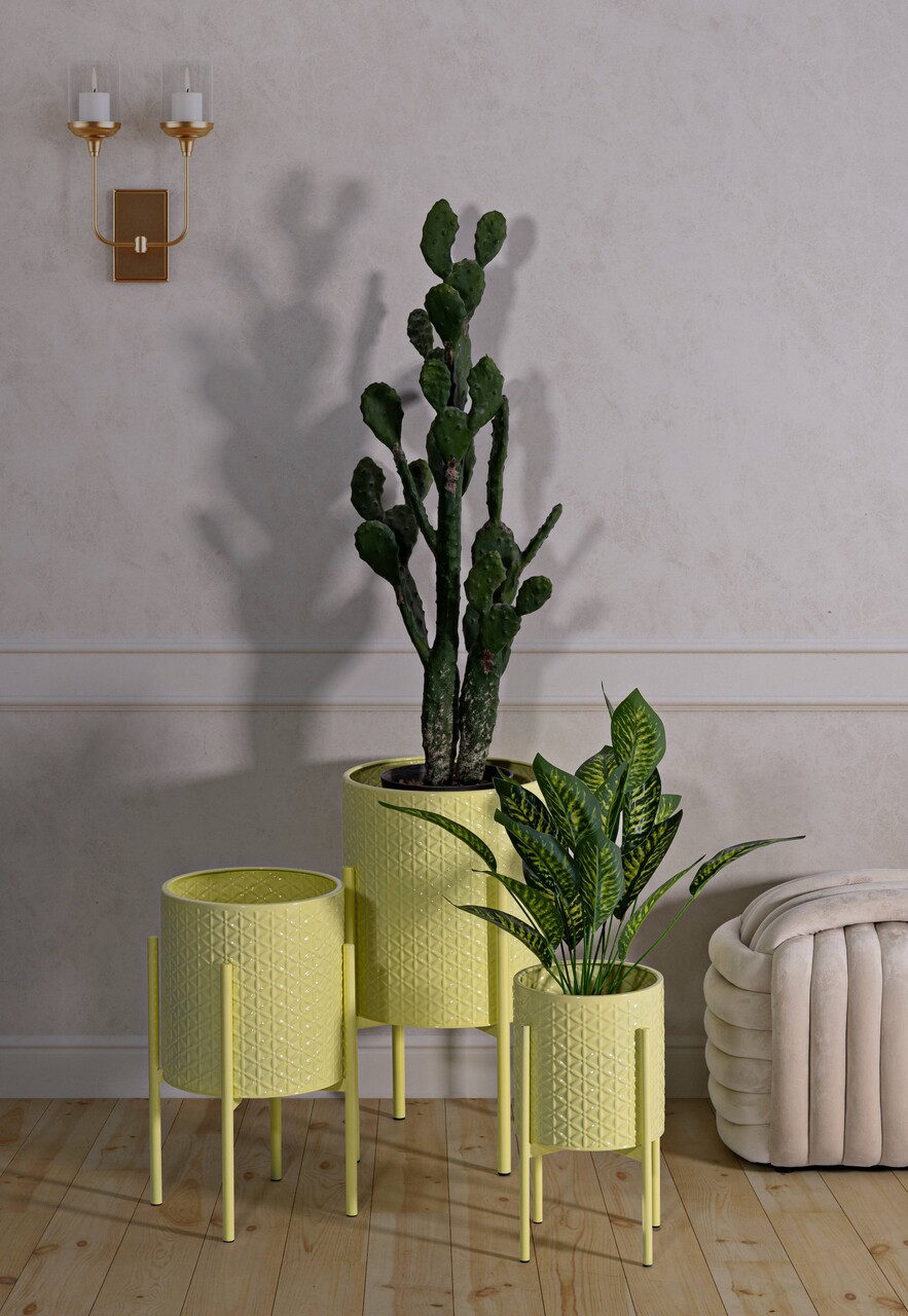 Set 3 ghivece Iris, Mauro Ferretti, 36x36x56.5 cm, fier, galben