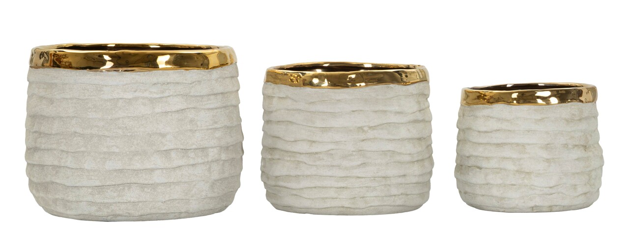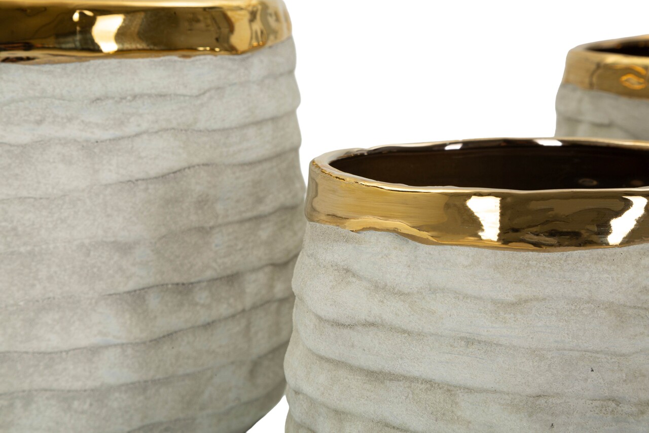Set 3 ghivece, Mauro Ferretti, Lima Tall, 23x23x17.5 cm, ceramica, gri/auriu
