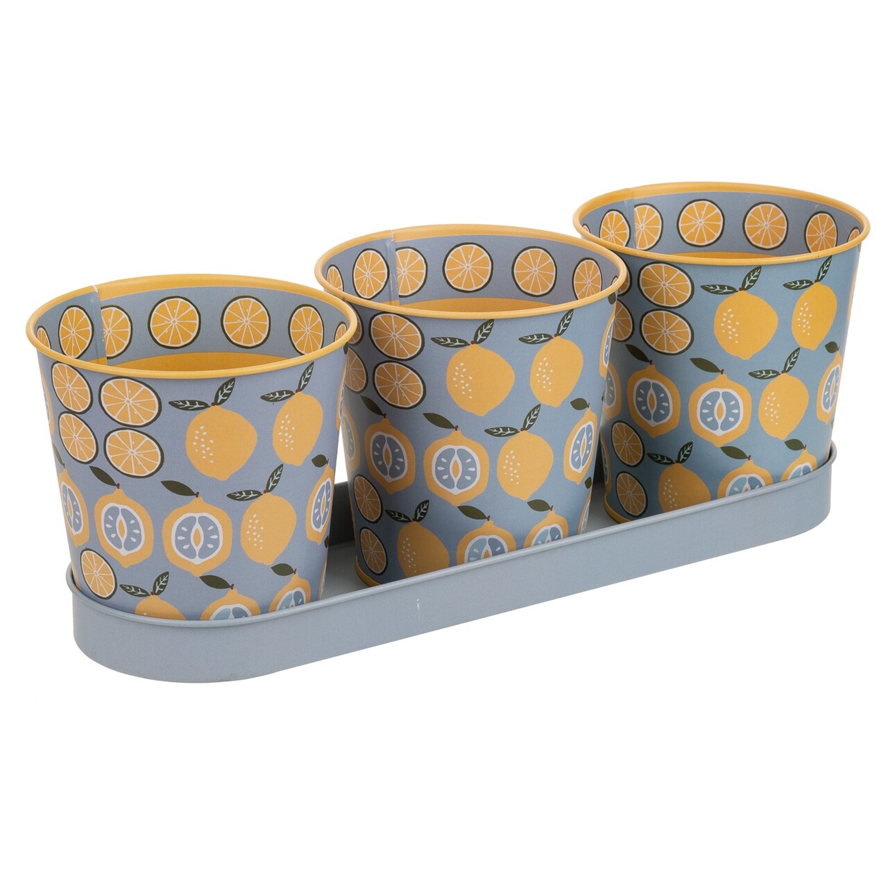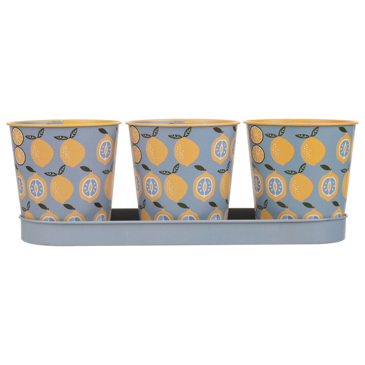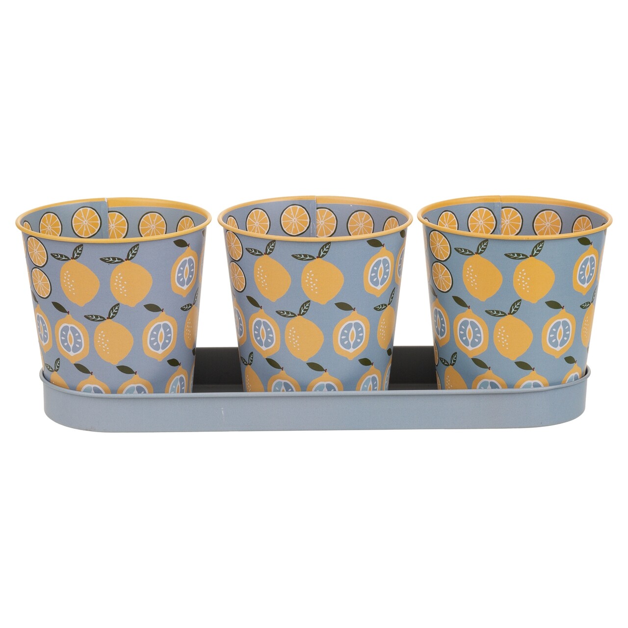 Set 3 ghivece si tavita, Lemon, Creaciones Meng, 28.5x10x10 cm