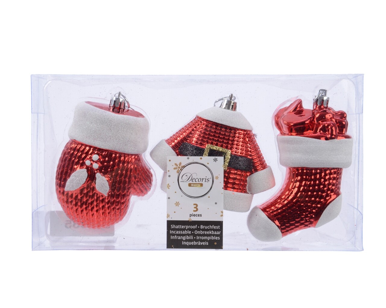 Set 3 globuri asortate, Decoris, plastic, rosu/alb