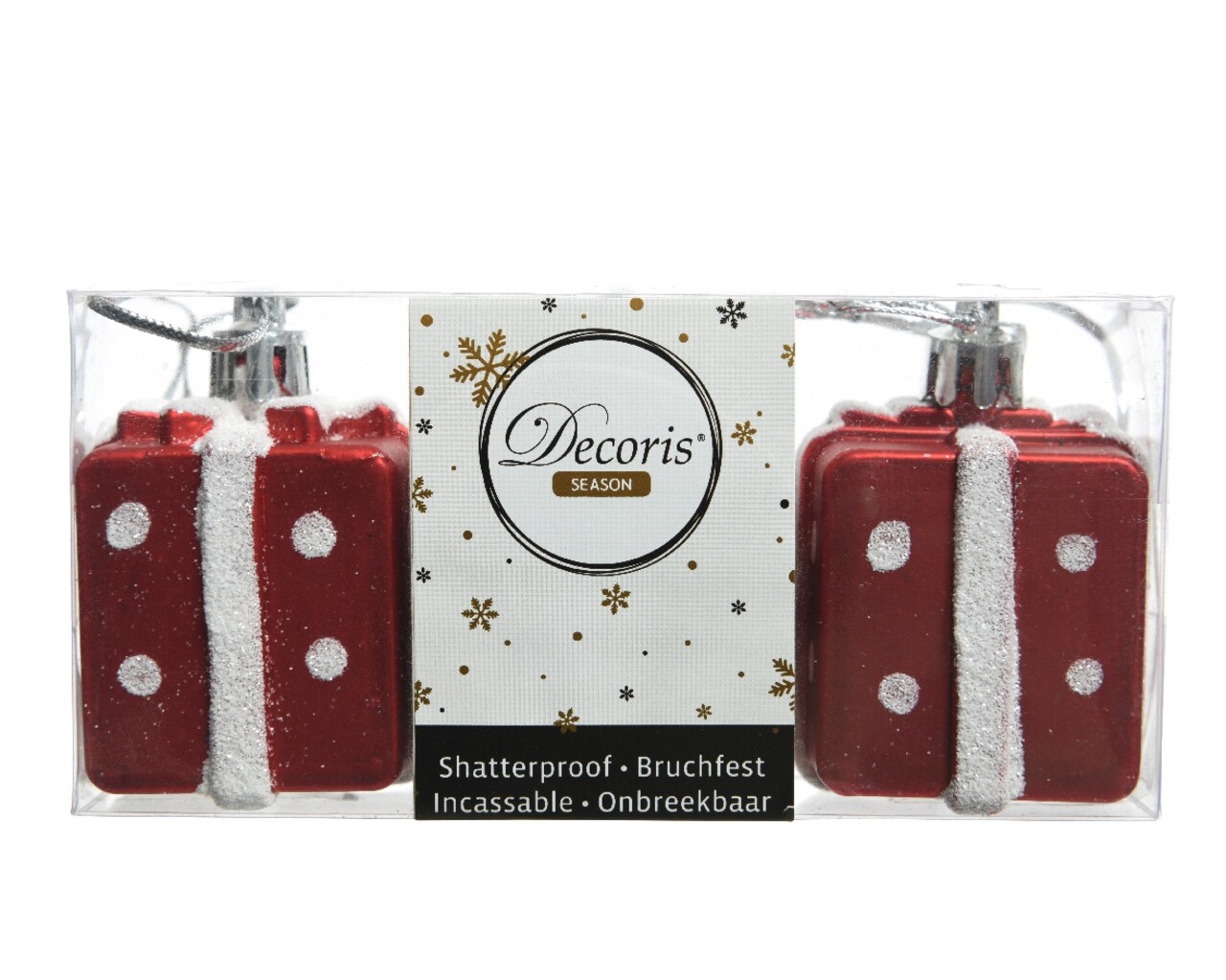 Set 3 globuri Gift box, Decoris, plastic, rosu/alb