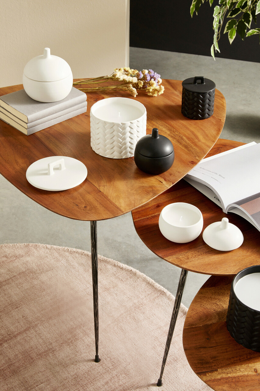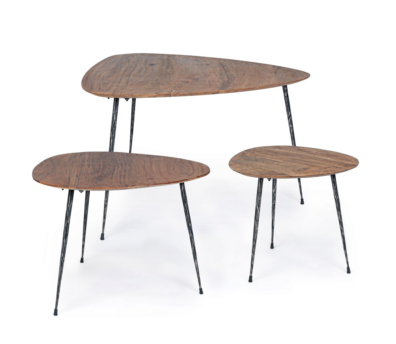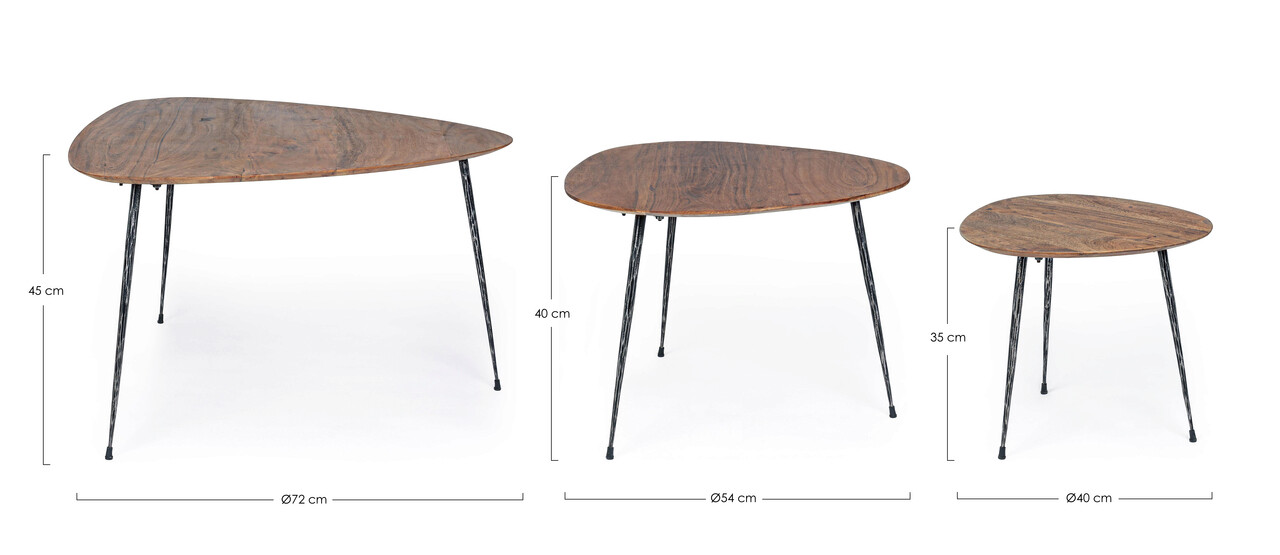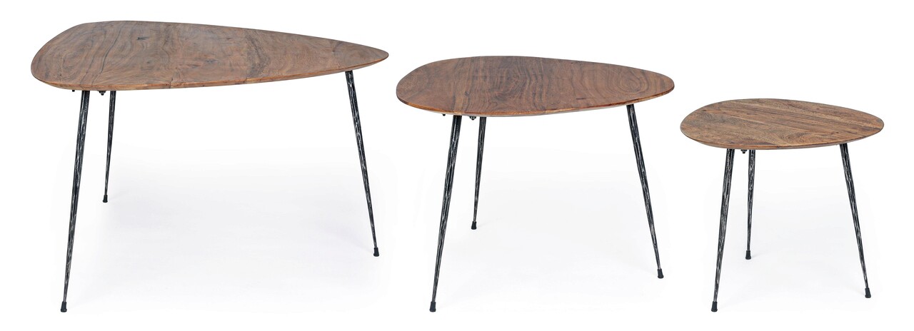 Set 3 masute de cafea Boscage, Bizzotto, Ø72 x 45 cm, lemn de mango/otel