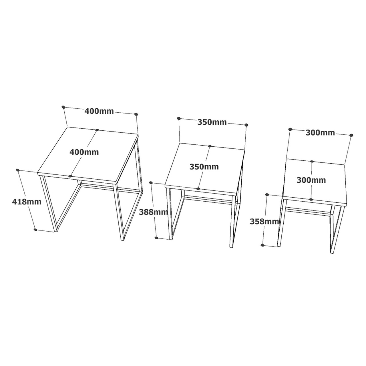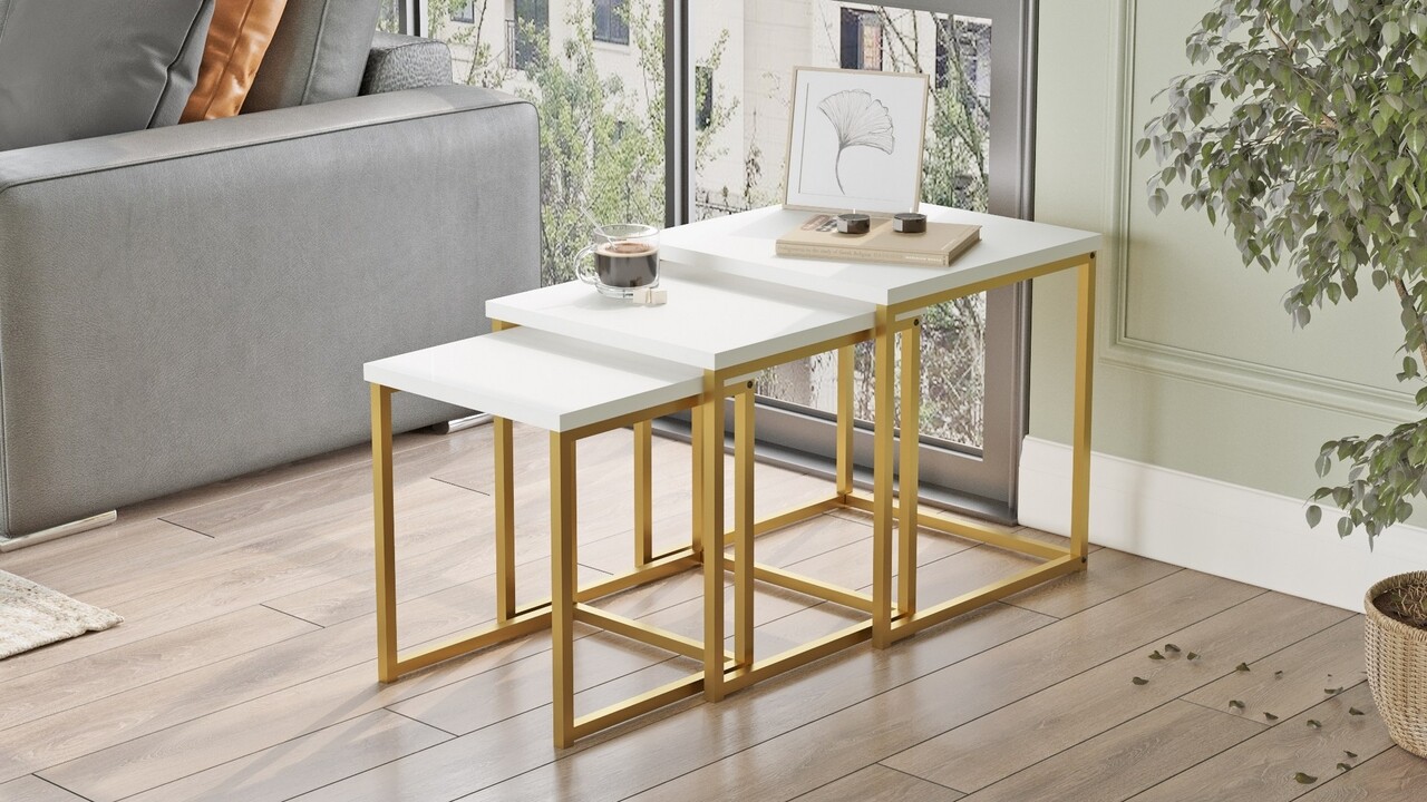Set 3 masute de cafea, Locelso, VG7-W, pal melaminat, alb/auriu