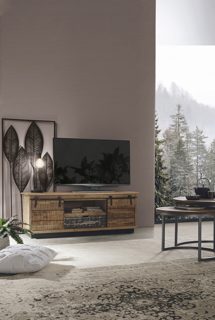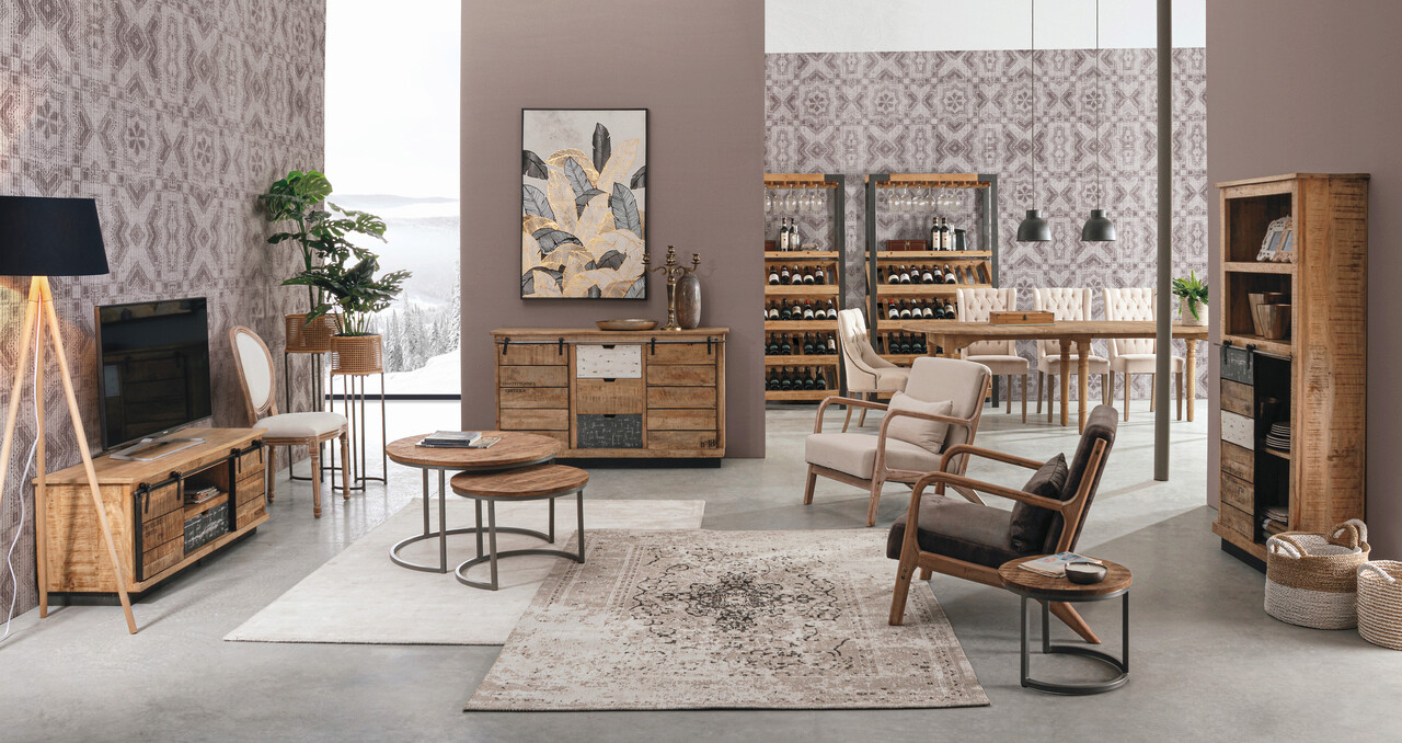 Set 3 masute de cafea Narvik Round, Bizzotto, Ø78 x 47 cm, otel/lemn de mango