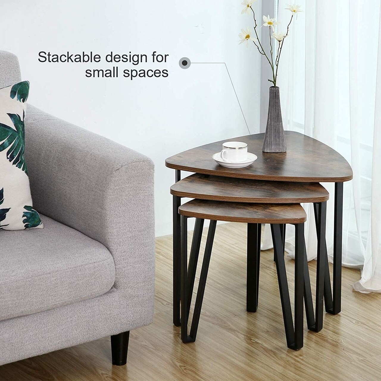 Set 3 masute de cafea Nesting, Vasagle, otel/PAL, maro