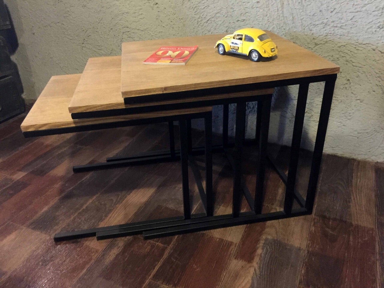 1 masuta mare cu dimensiunea: 60x45x55 cm, 1 masuta mijlocie cu dimensiunea: 53x45x50 cm, 1 masuta mica cu dimensiunea: 46x45x45 cm