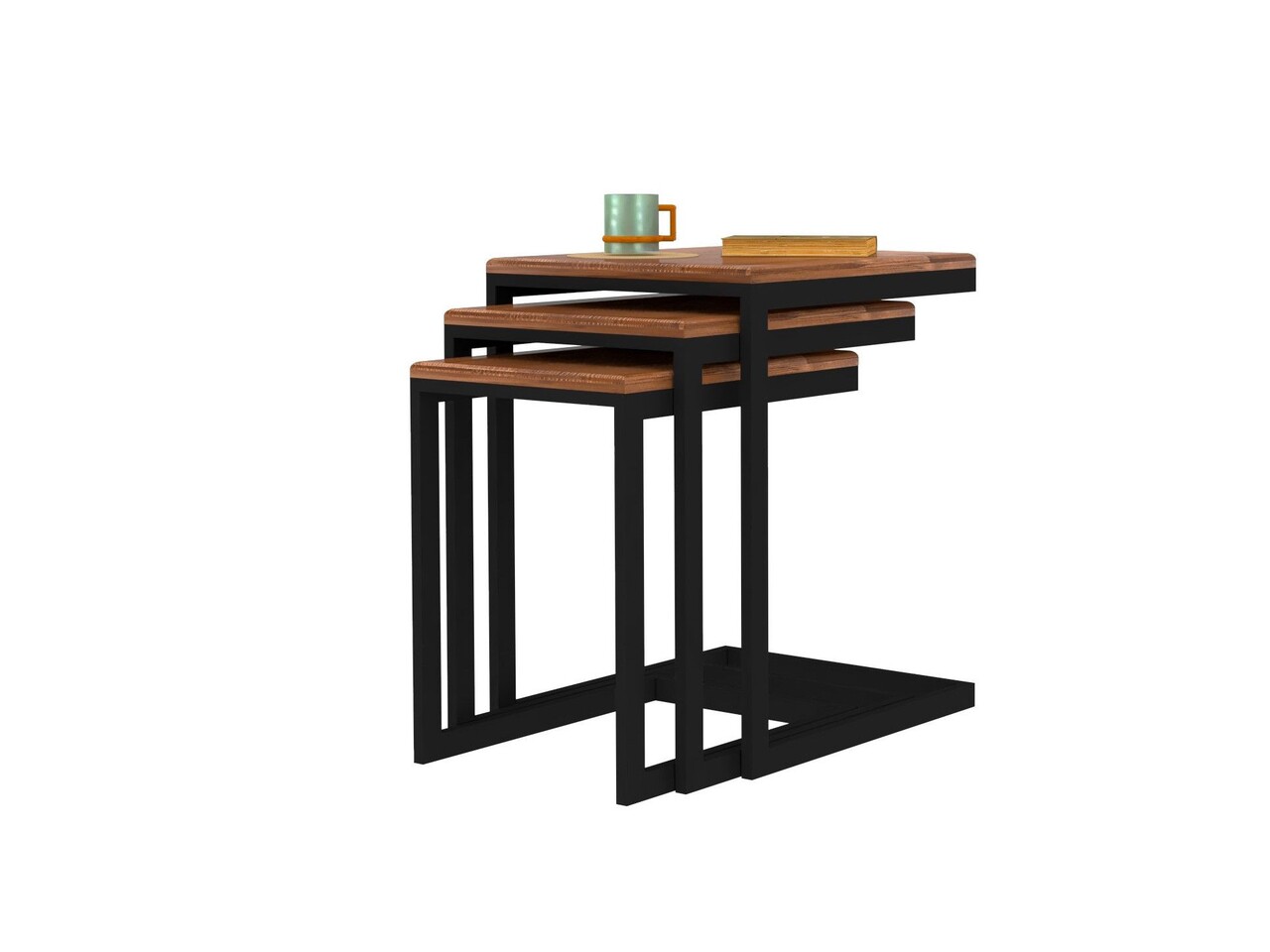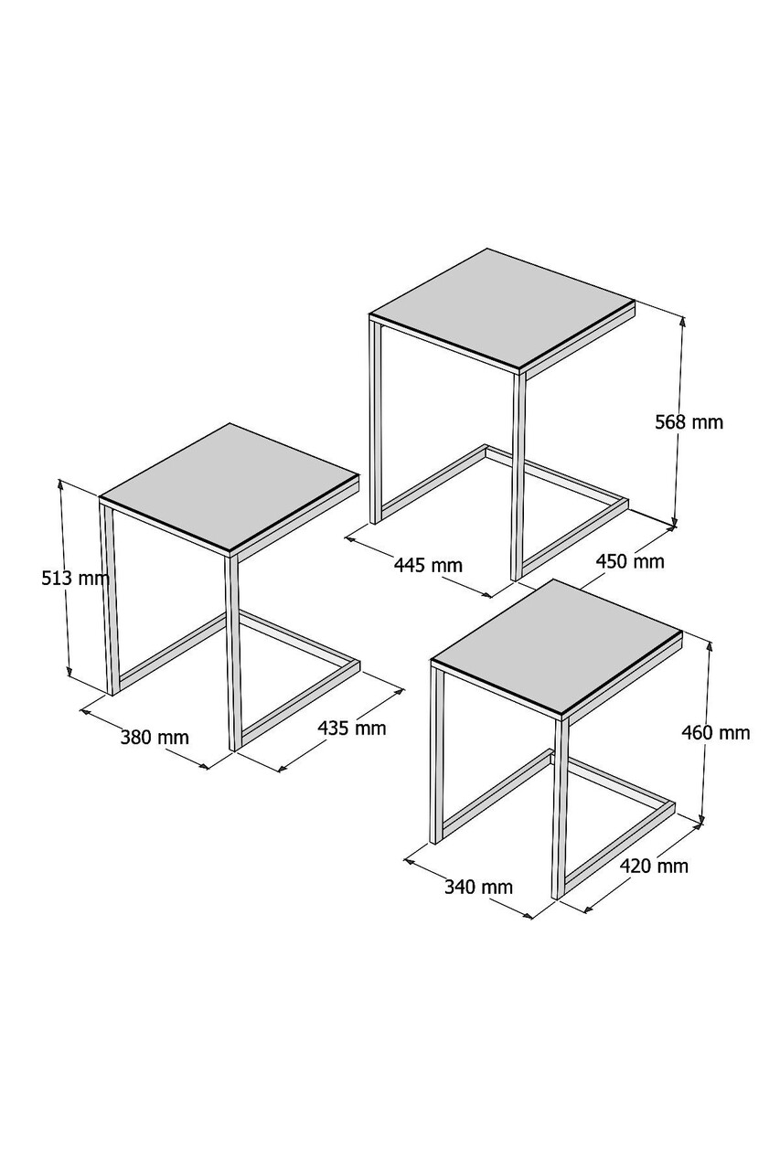 Set 3 masute Ege, Puqa Design, 44.5x45x56.8 cm, lemn de pin, maro