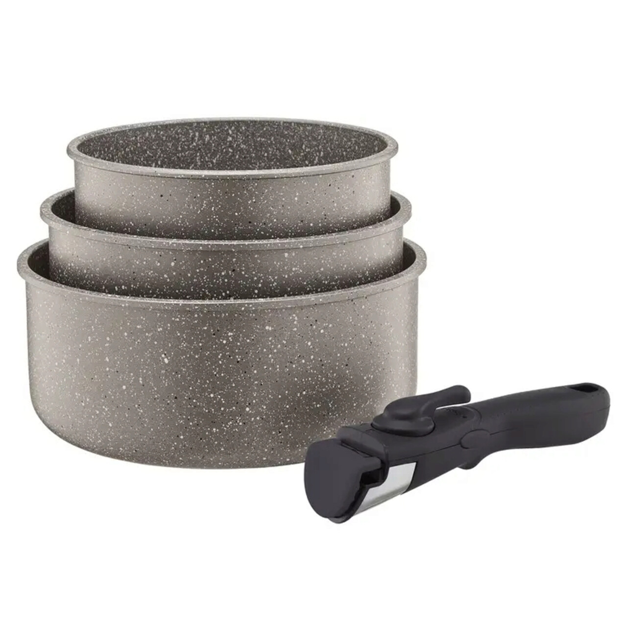Set 3 oale cu maner detasabil Silverstone, Ambition, 16/18/20 cm, invelis Qualum Basic Stone
