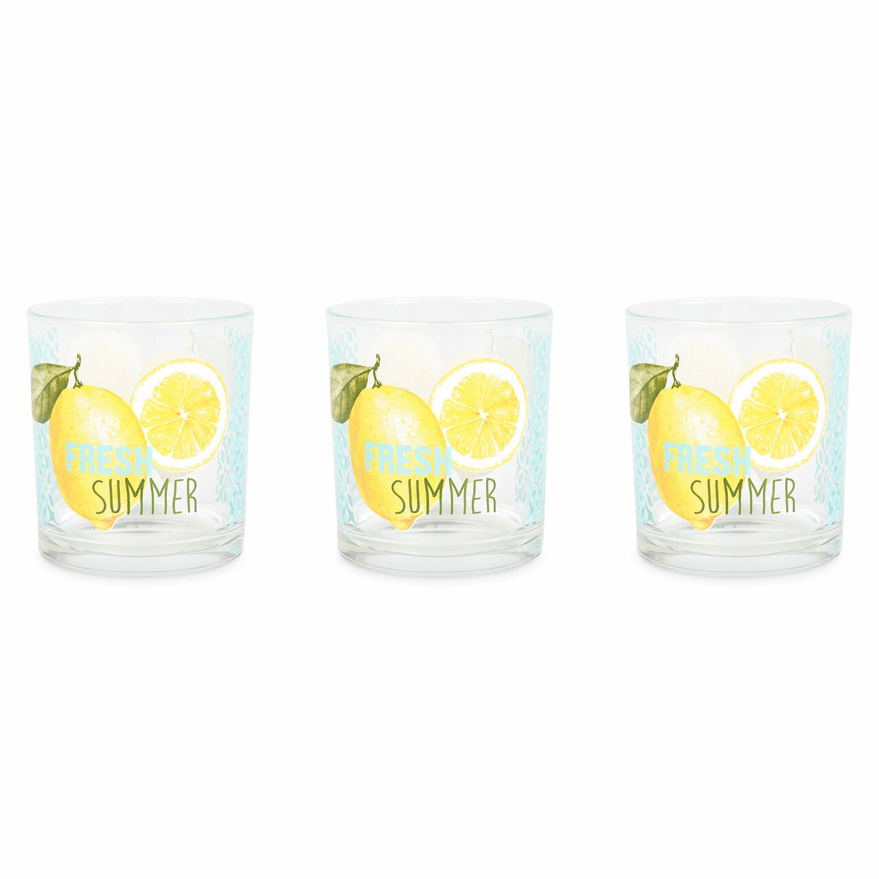 Set 3 pahare, Fresh Summer, 220 ml, sticla, transparent/multicolor