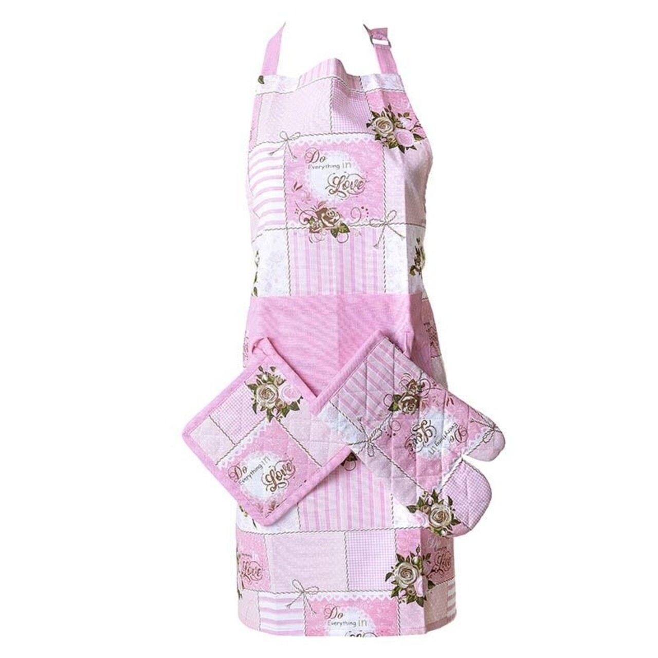 Set 3 piese pentru bucatarie Flower Pink, InArt, bumbac, roz