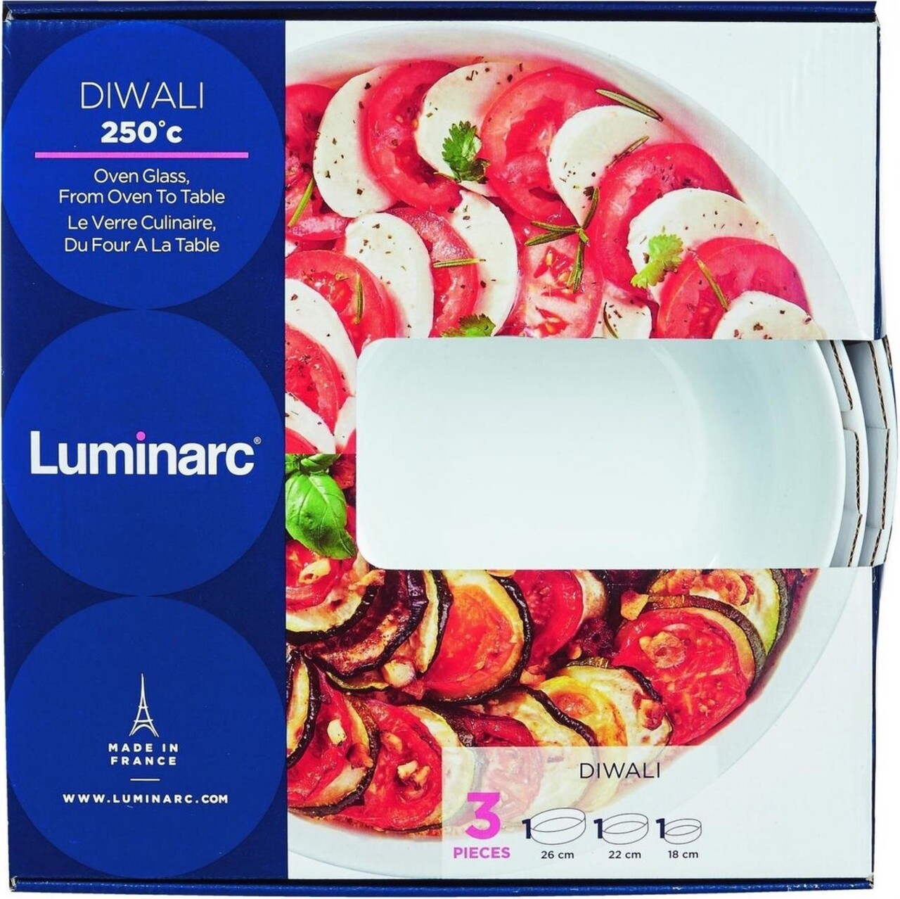 Set 3 platouri / vase pentru copt, Luminarc, Diwali, sticla, alb