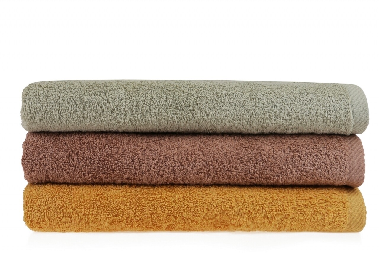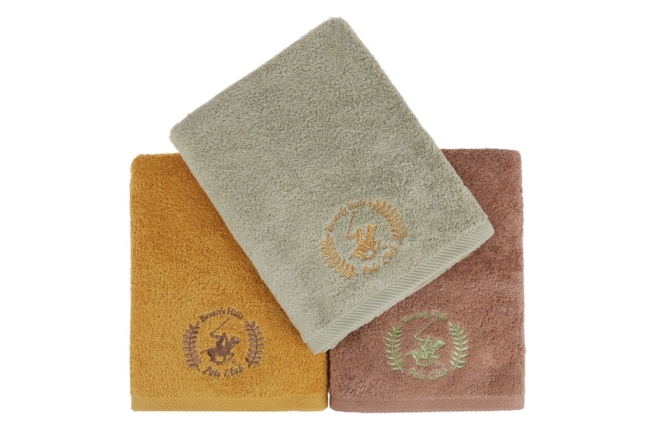 Set 3 prosoape de baie Beverly Hills Polo Club, 70x140 cm, 100% bumbac, Light Brown/Mustard/Green