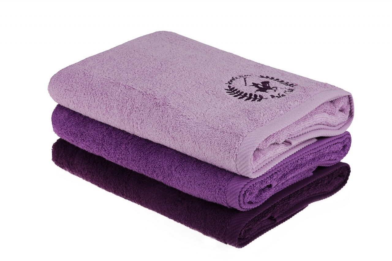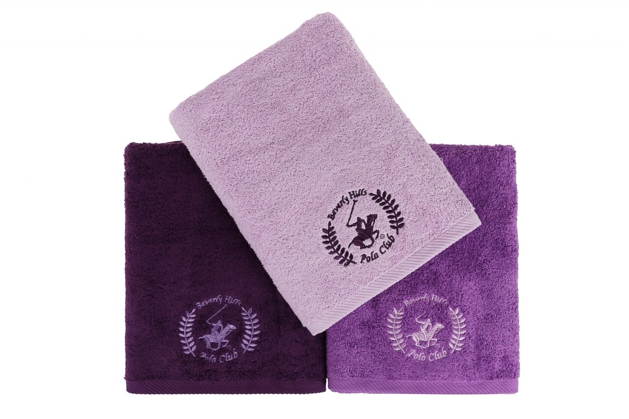 Set 3 prosoape de baie Beverly Hills Polo Club, 70x140 cm, 100% bumbac, Lilac/Purple/Dark Purple