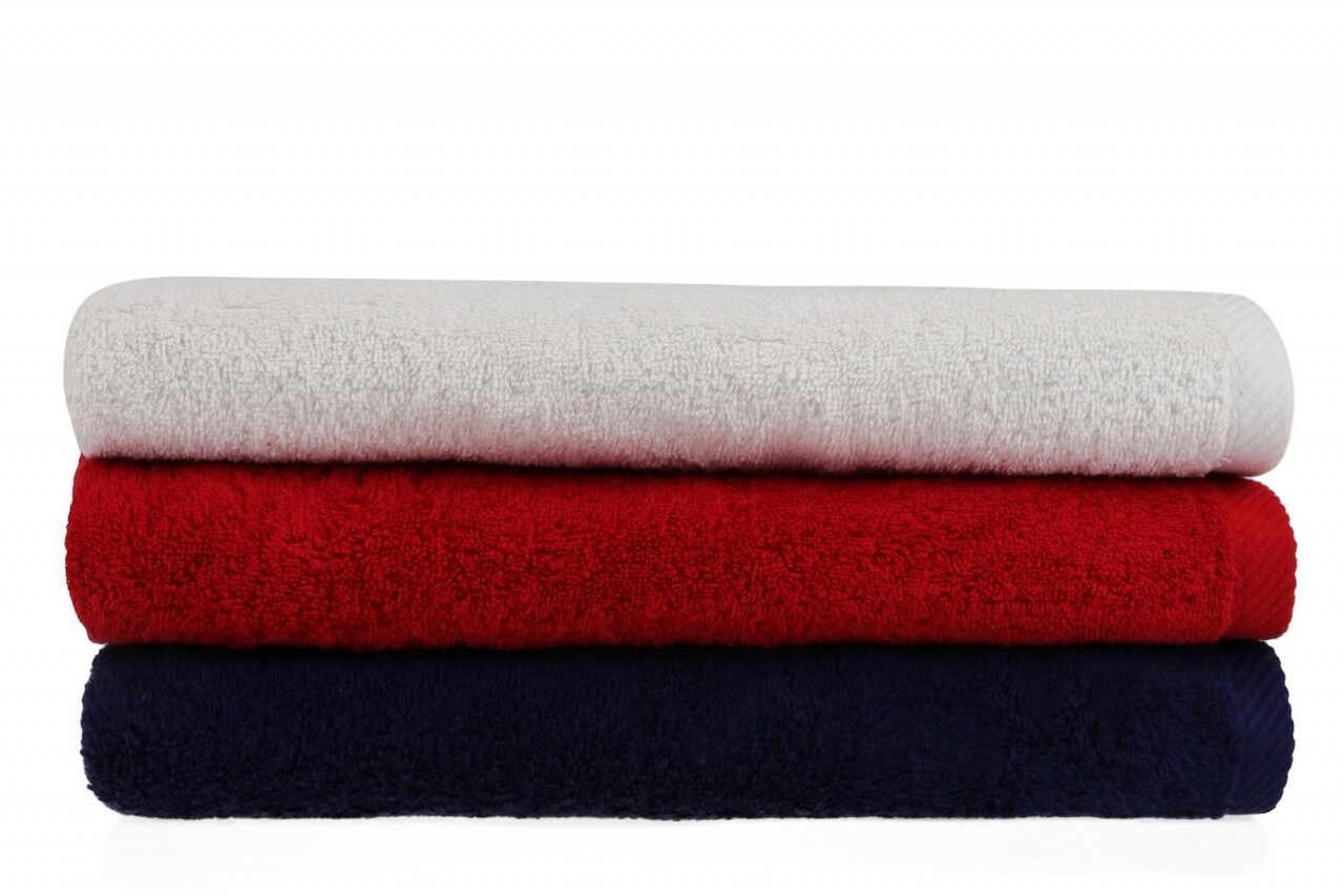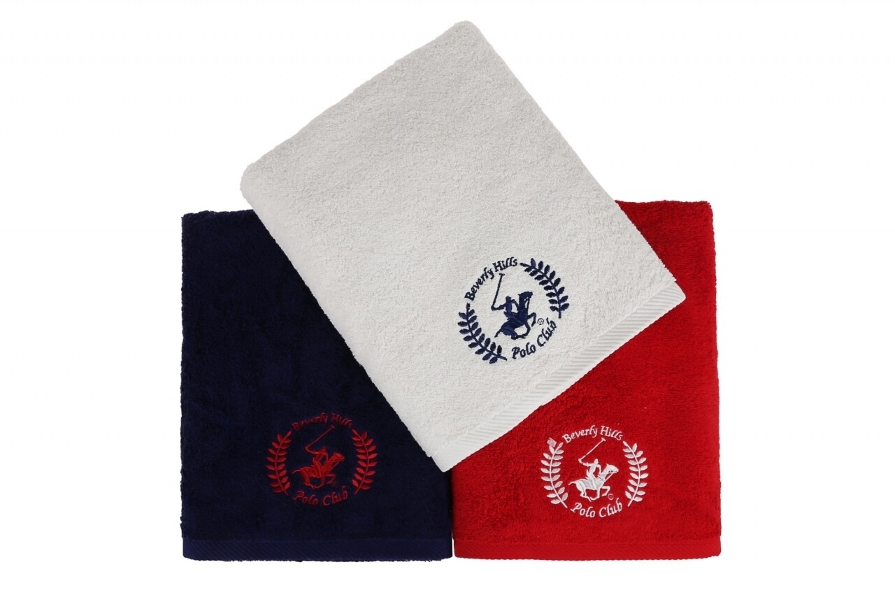 Set 3 prosoape de baie Beverly Hills Polo Club, 70x140 cm, 100% bumbac, Red/White/Dark Blue