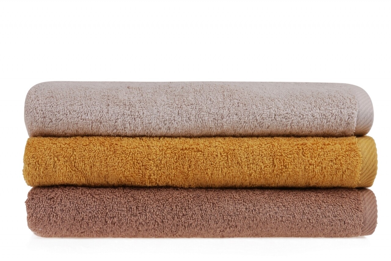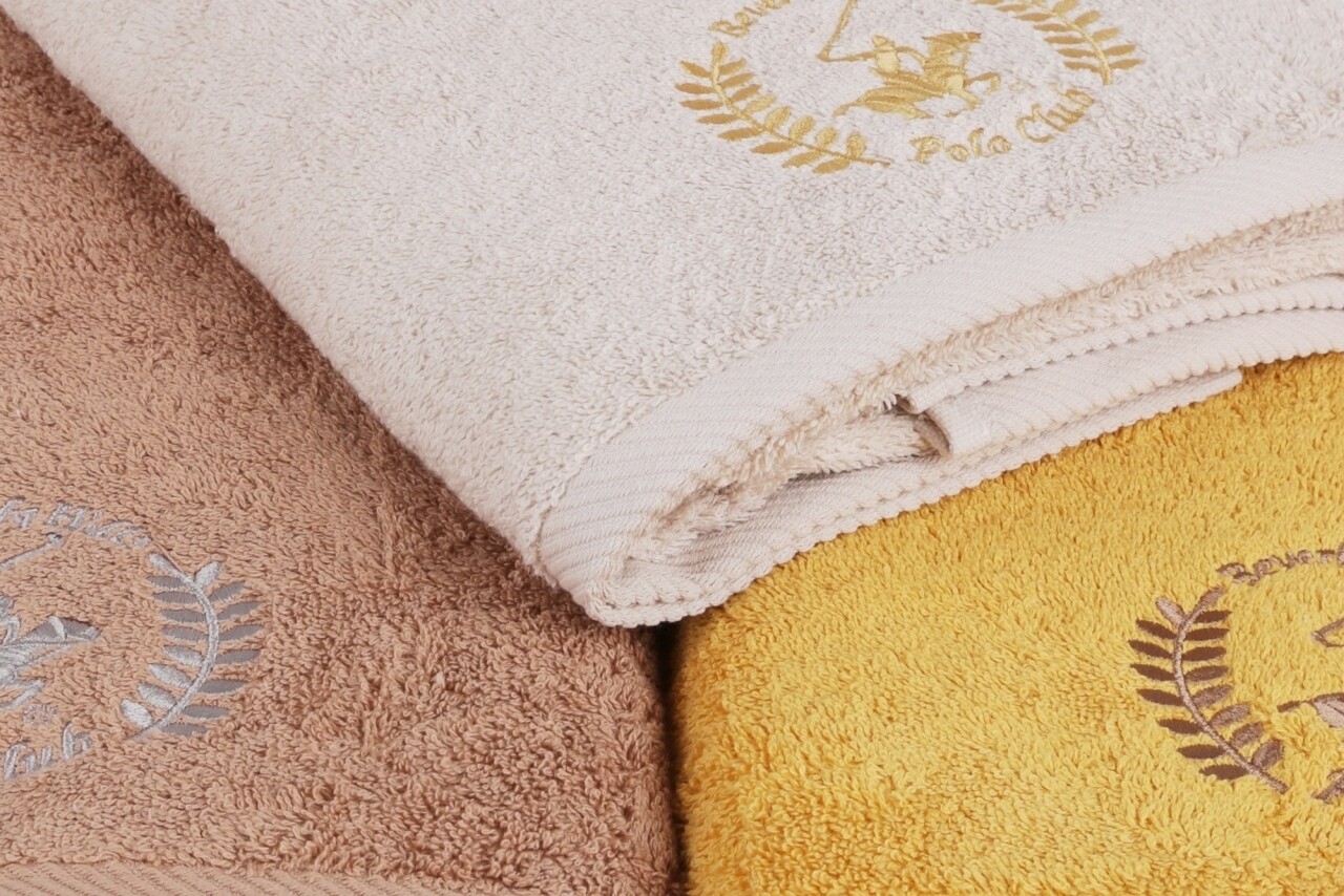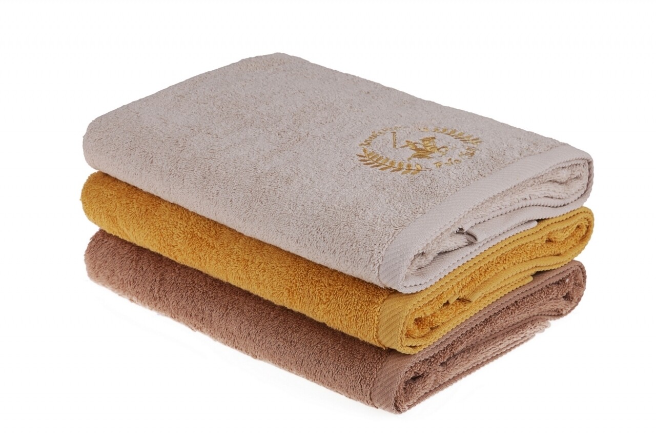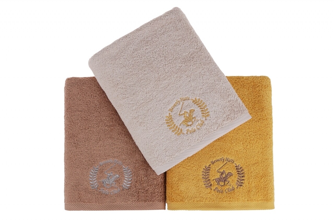 Set 3 prosoape de baie Beverly Hills Polo Club, 70x140 cm, 100% bumbac, Rock/Light Brown/Mustard