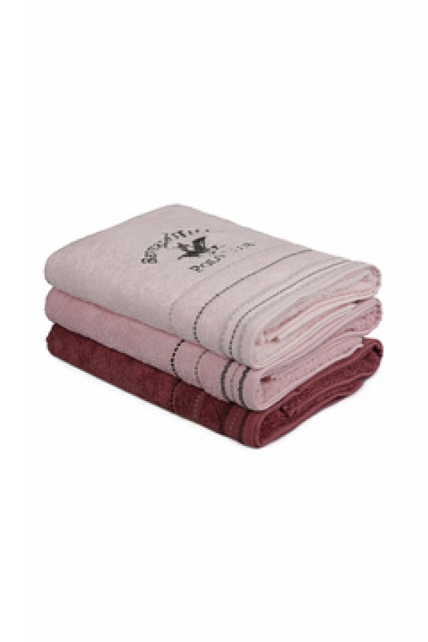 Set 3 prosoape de baie Beverly Hills Polo Club, 70x140 cm, 100% bumbac, Light Pink/Dark Pink/Dusty Rose