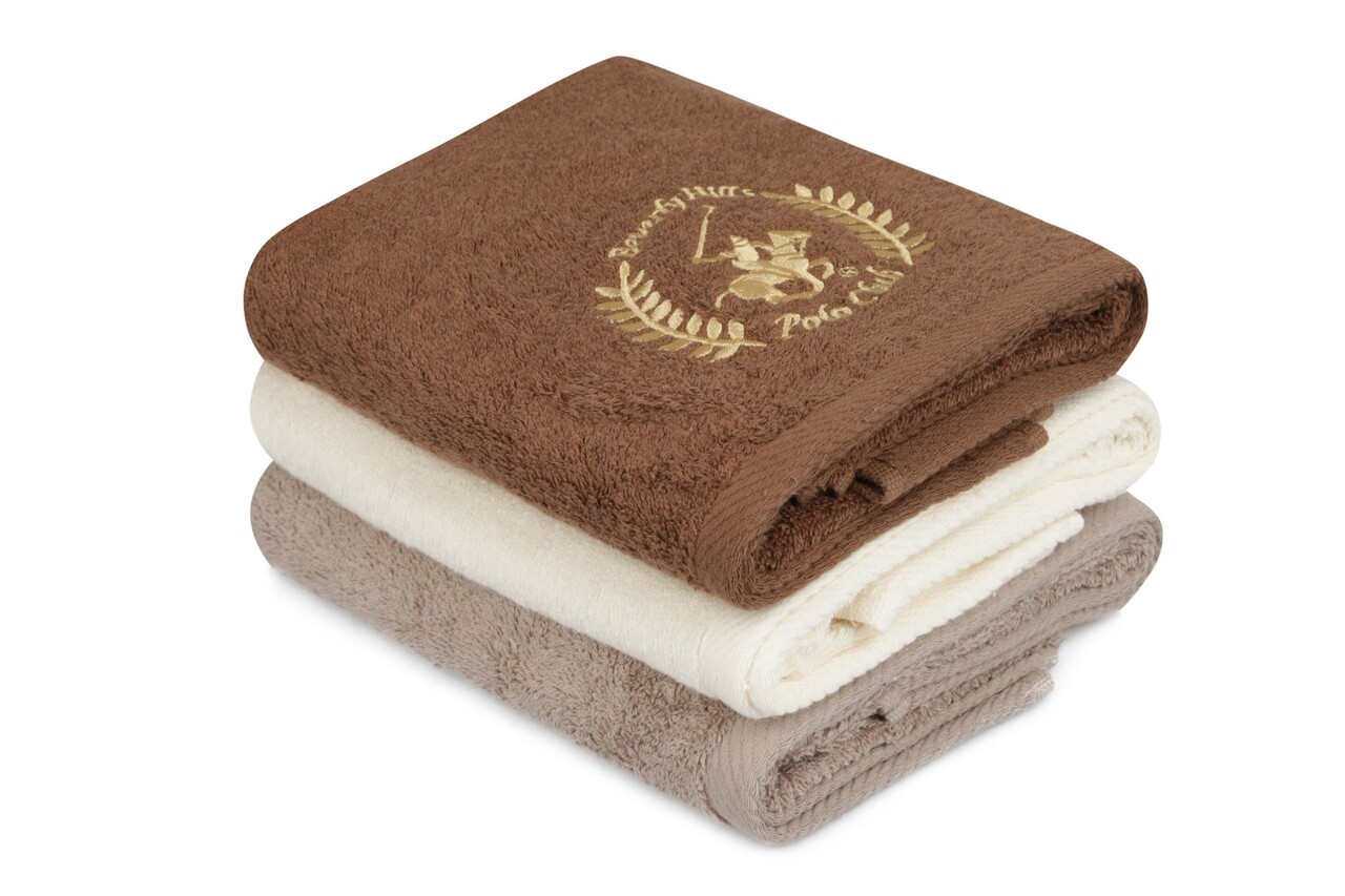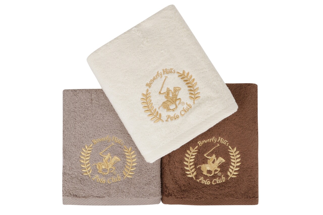 Set 3 prosoape de maini, Beverly Hills Polo Club, 402, 50x90 cm, 100% bumbac, crem/maro/maro inchis