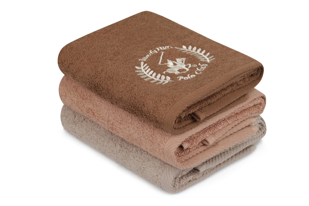 Set 3 prosoape de maini, Beverly Hills Polo Club, 402, 50x90 cm, 100% bumbac, maro/maro inchis