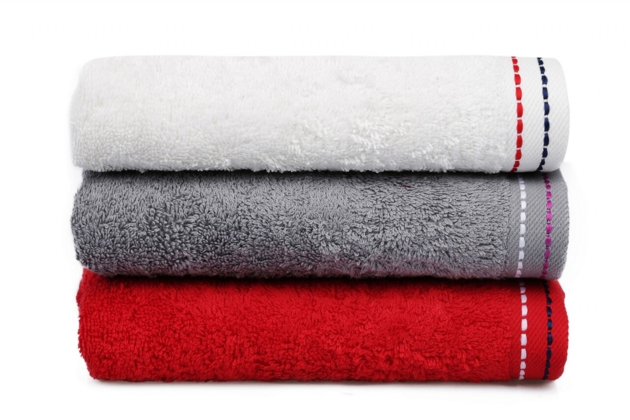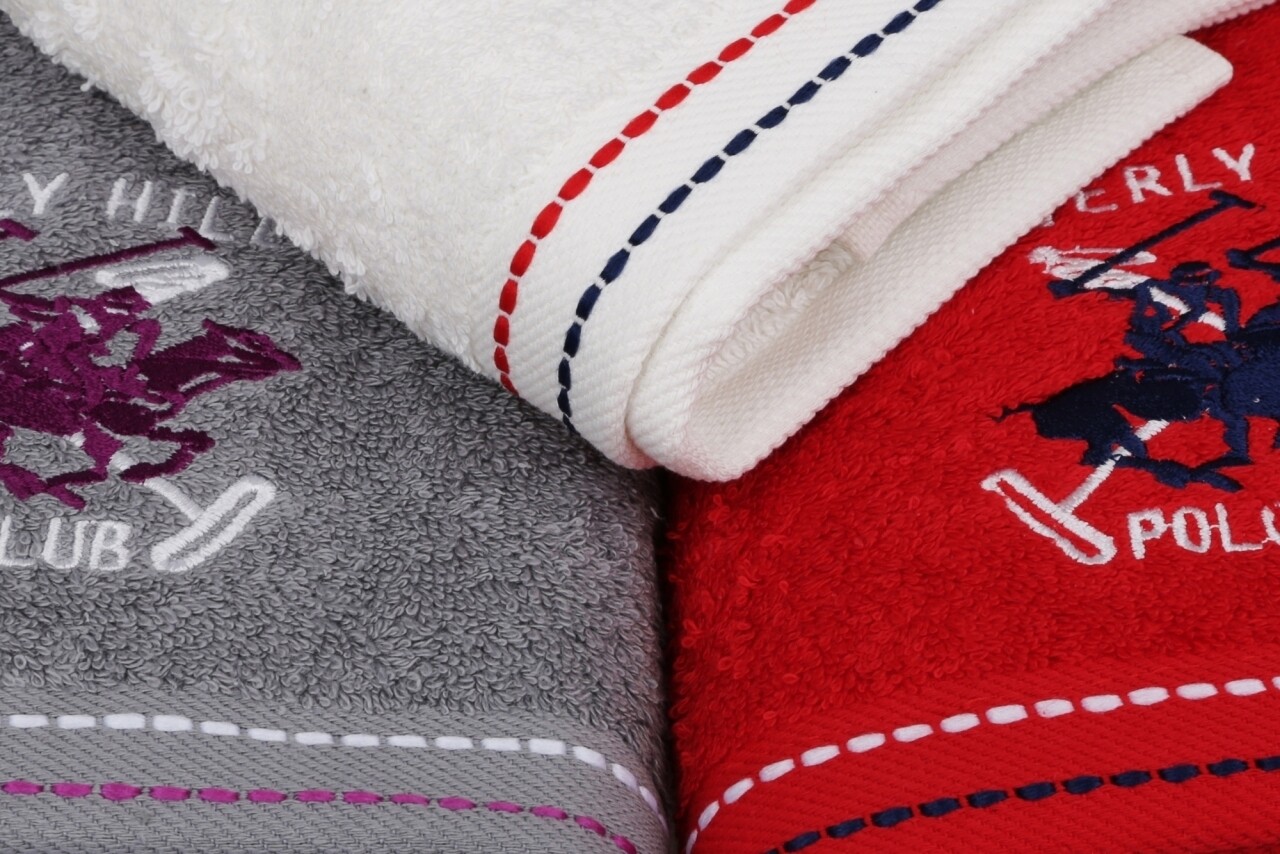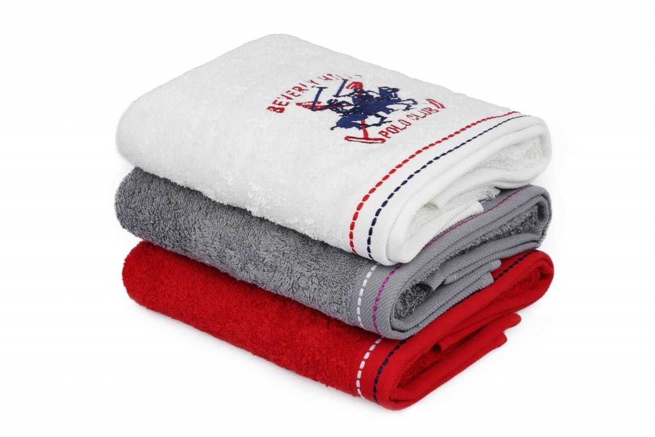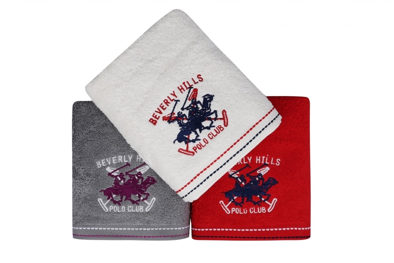 Set 3 prosoape de maini Beverly Hills Polo Club, 50x90 cm, 100% bumbac, White/Red/Grey
