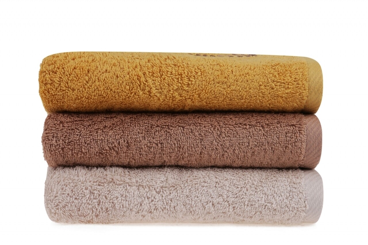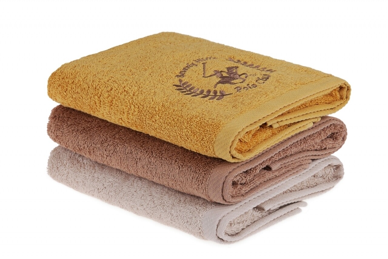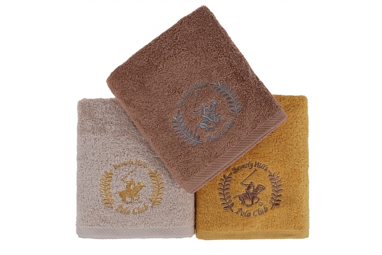 Set 3 prosoape de maini Beverly Hills Polo Club, 50x90 cm, 100% bumbac, Rock/Light Brown/Mustard