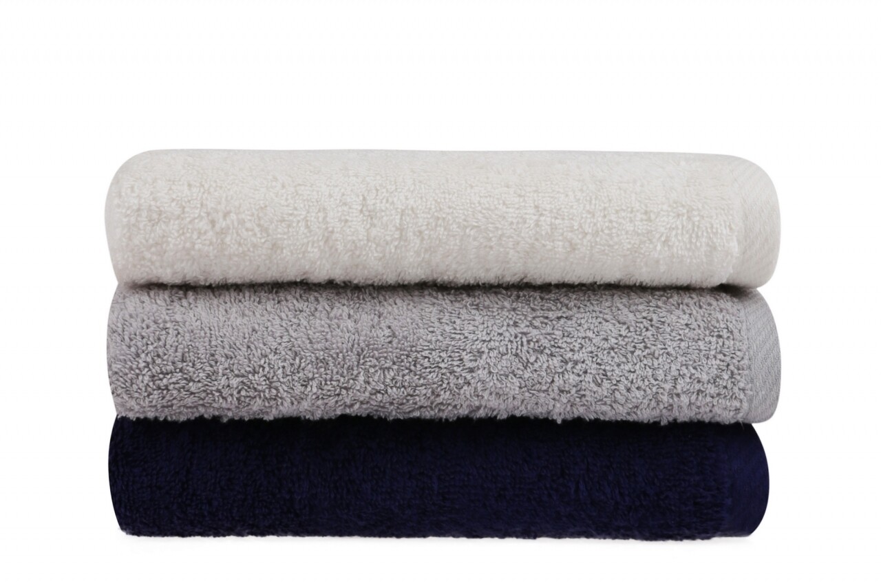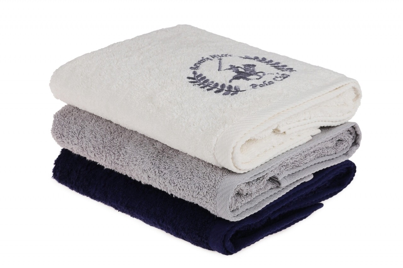 Set 3 prosoape de maini Beverly Hills Polo Club, 50x90 cm, 100% bumbac, White/Grey/Dark Blue
