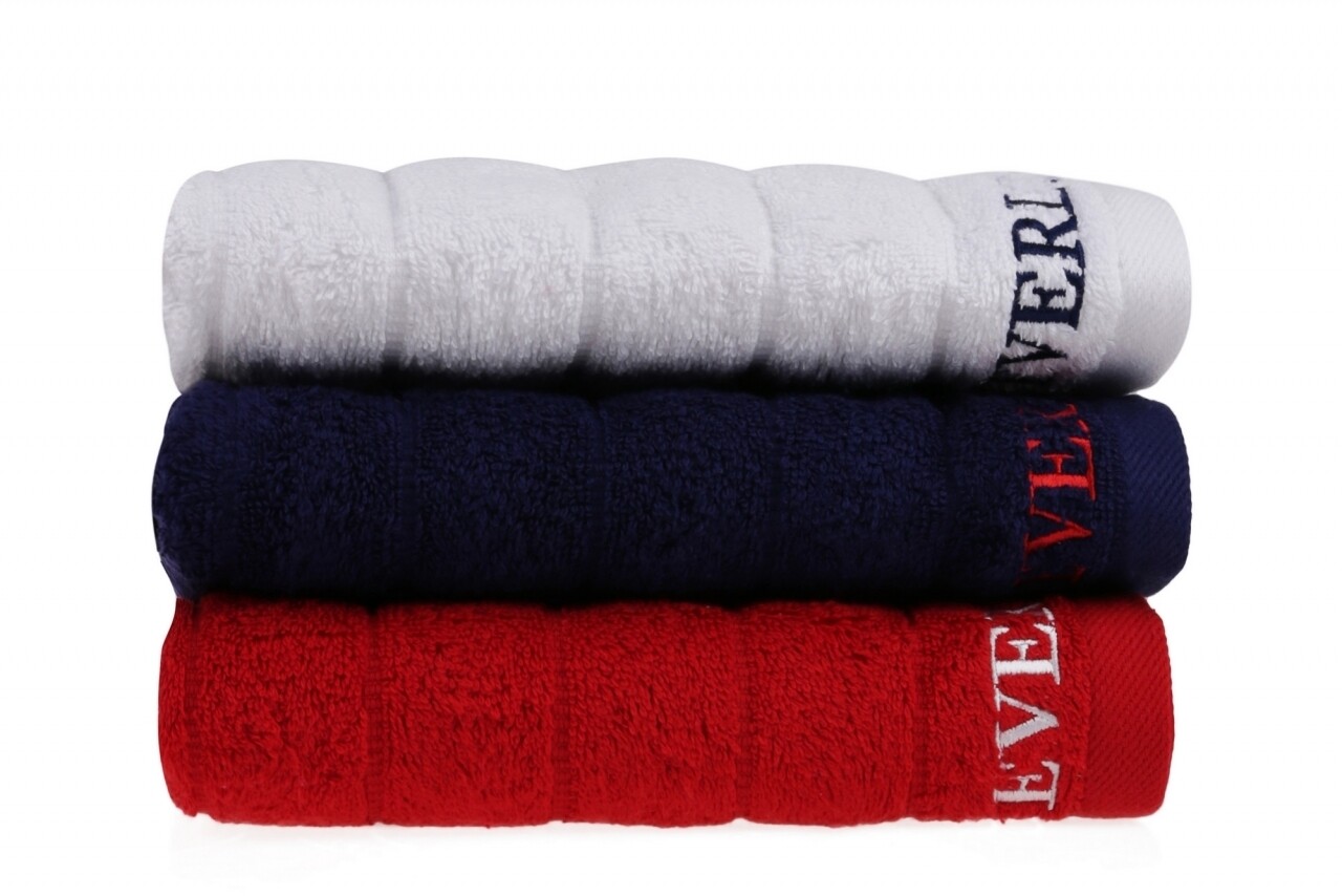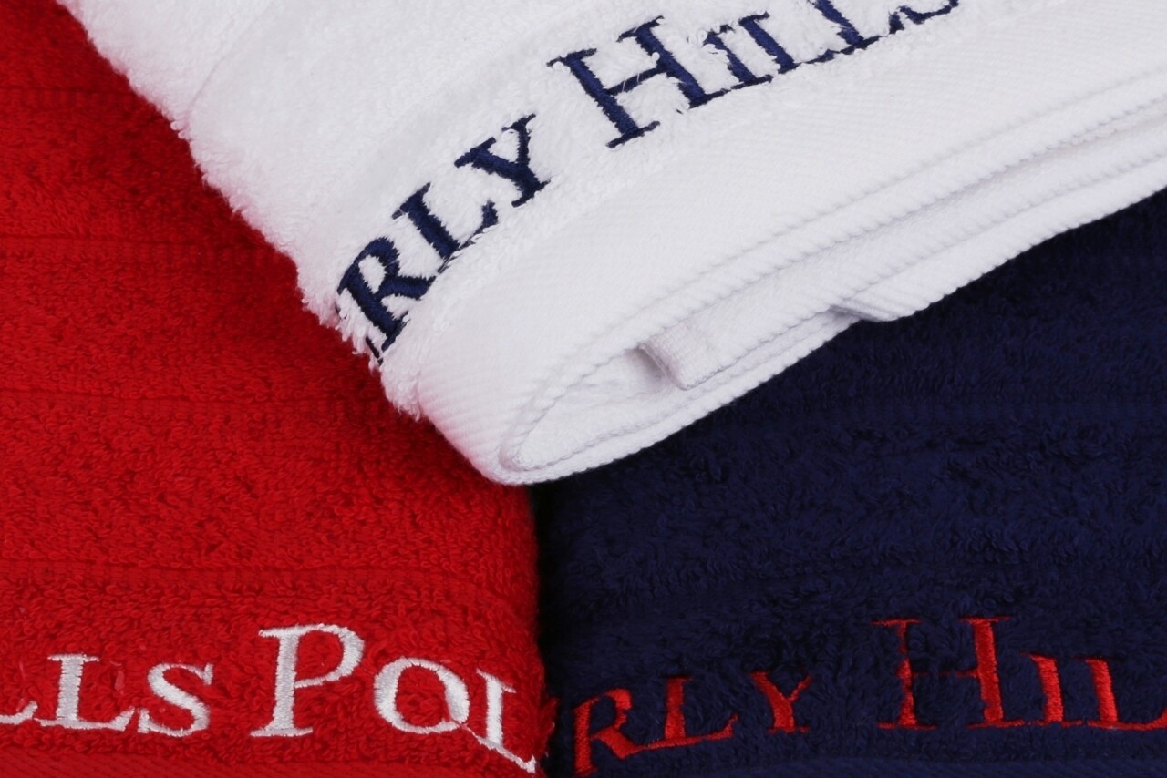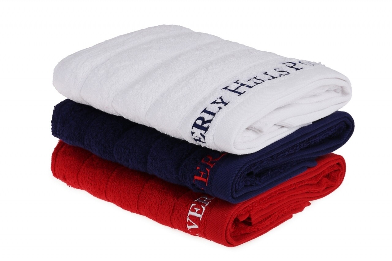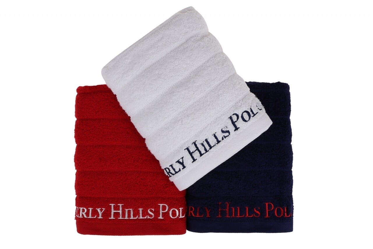 Set 3 prosoape de maini Beverly Hills Polo Club, 50x90 cm, 100% bumbac, Dark Blue/White/Red