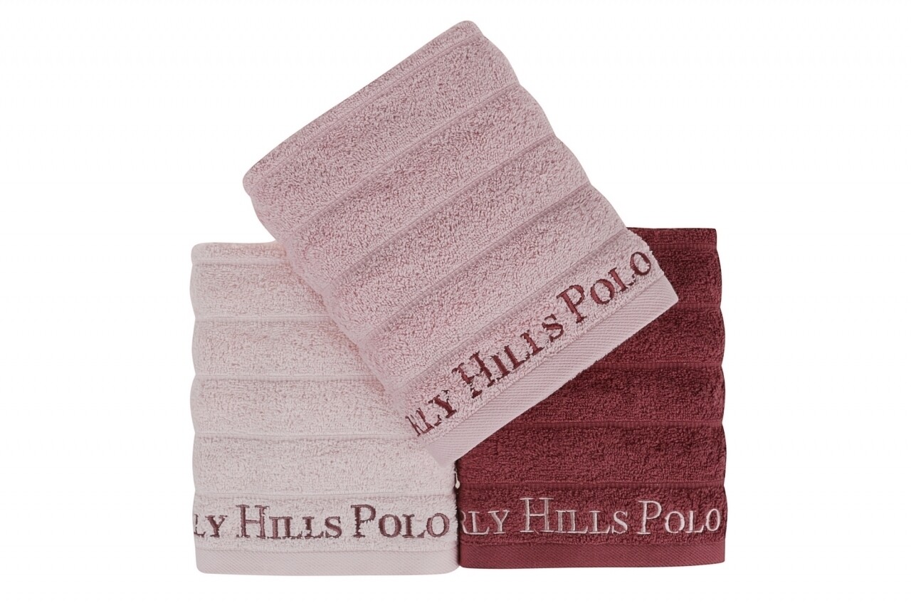 Set 3 prosoape de maini Beverly Hills Polo Club, 50x90 cm, 100% bumbac, Light Pink/Dusty Rose/Pink