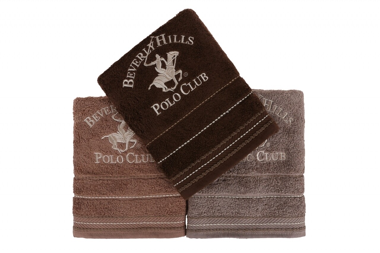 Set 3 prosoape de maini Beverly Hills Polo Club, 50x90 cm, 100% bumbac, maro