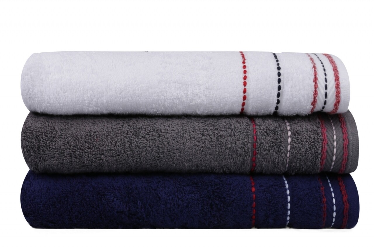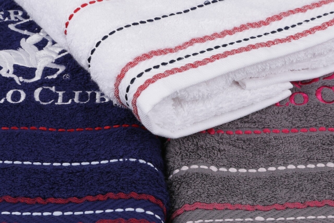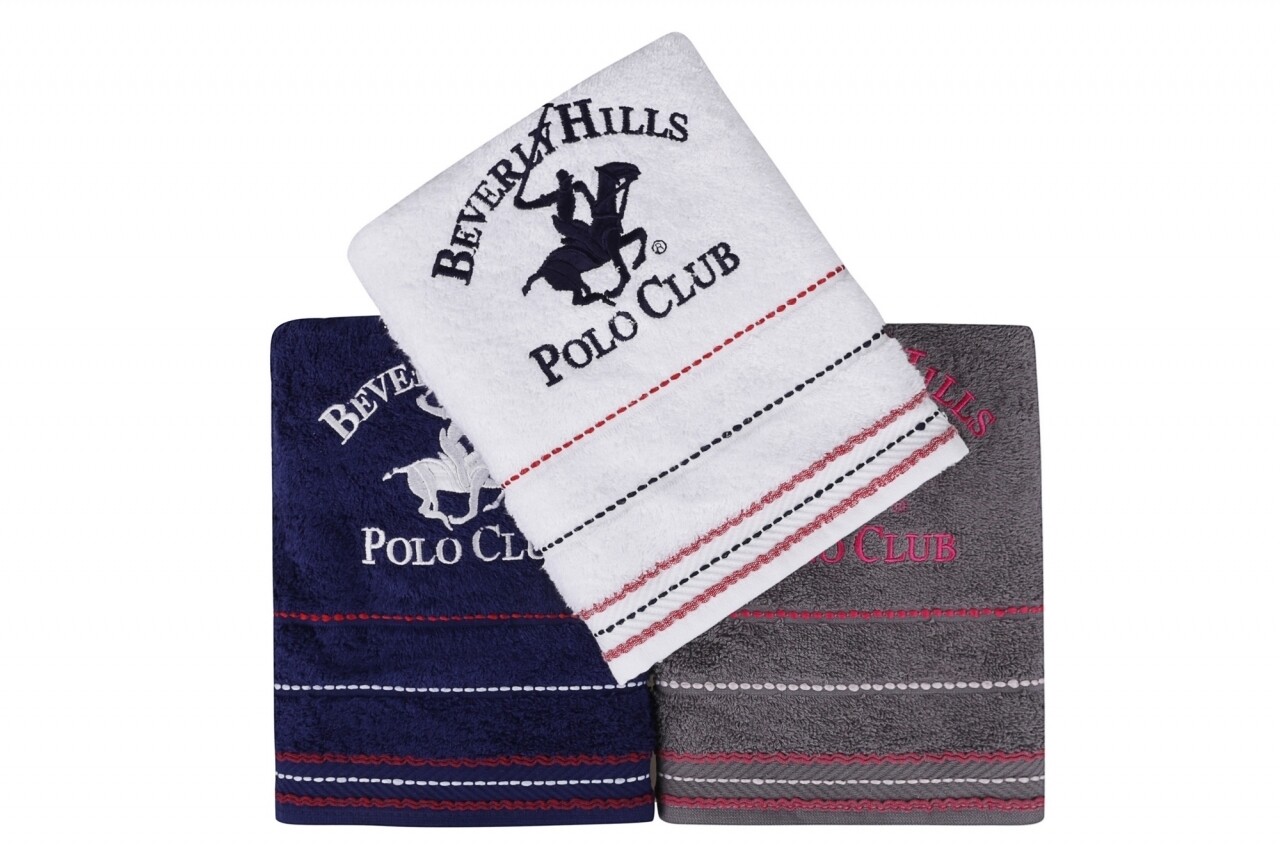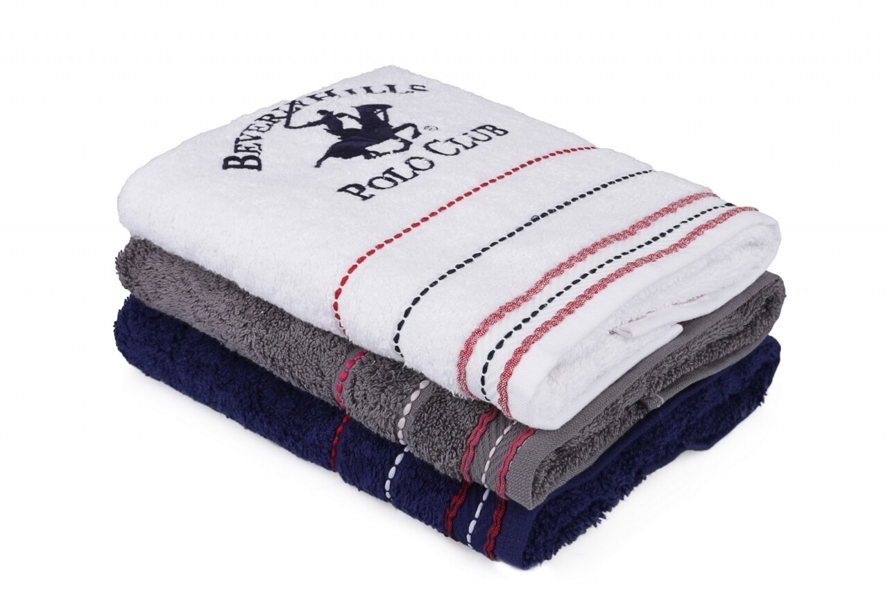 Set 3 prosoape de maini Beverly Hills Polo Club, 50x90 cm, 100% bumbac, alb/gri/bleumarin