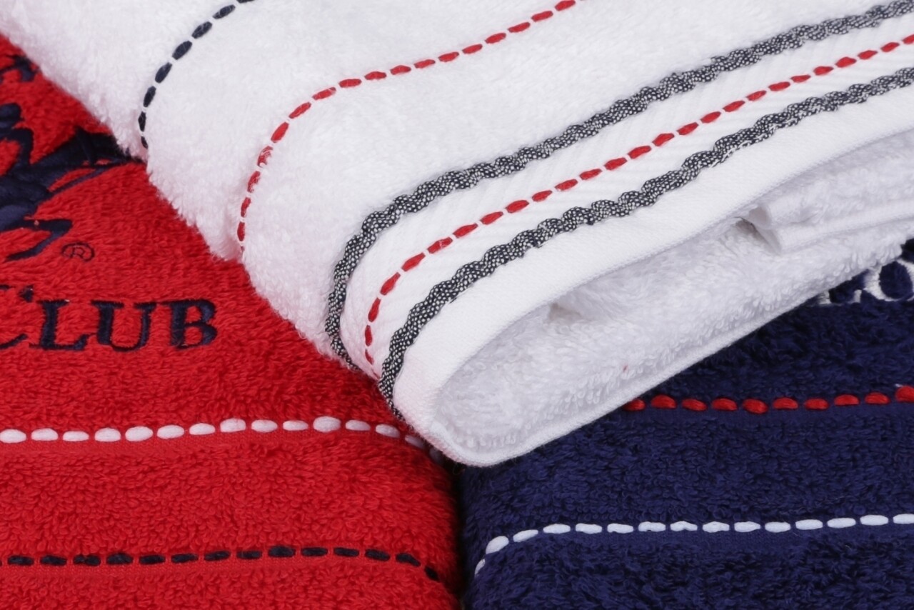 Set 3 prosoape de maini Beverly Hills Polo Club, 50x90 cm, 100% bumbac, alb/rosu/bleumarin