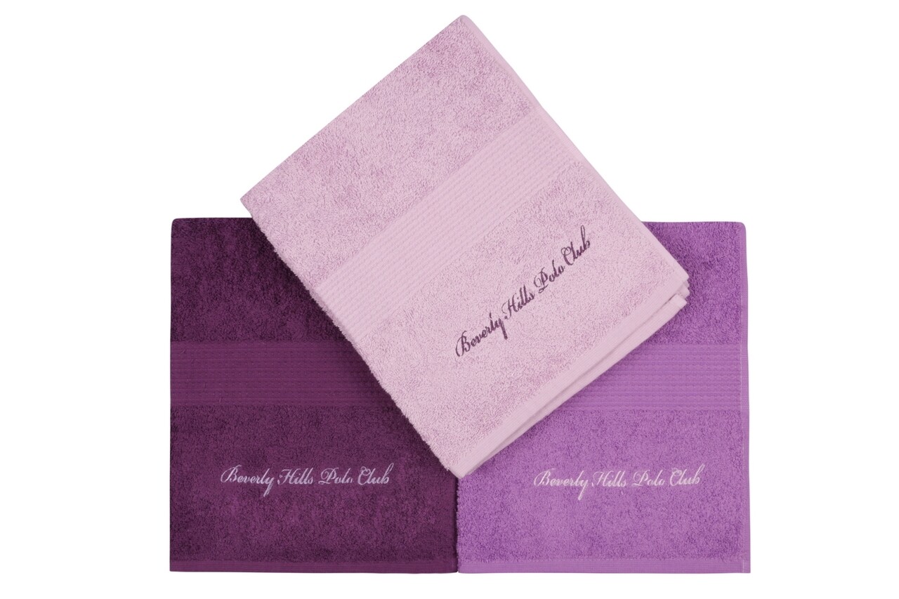 Set 3 prosoape de maini, Beverly Hills Polo Club, Lilac and Purple, 50 x 100 cm, 100% bumbac
