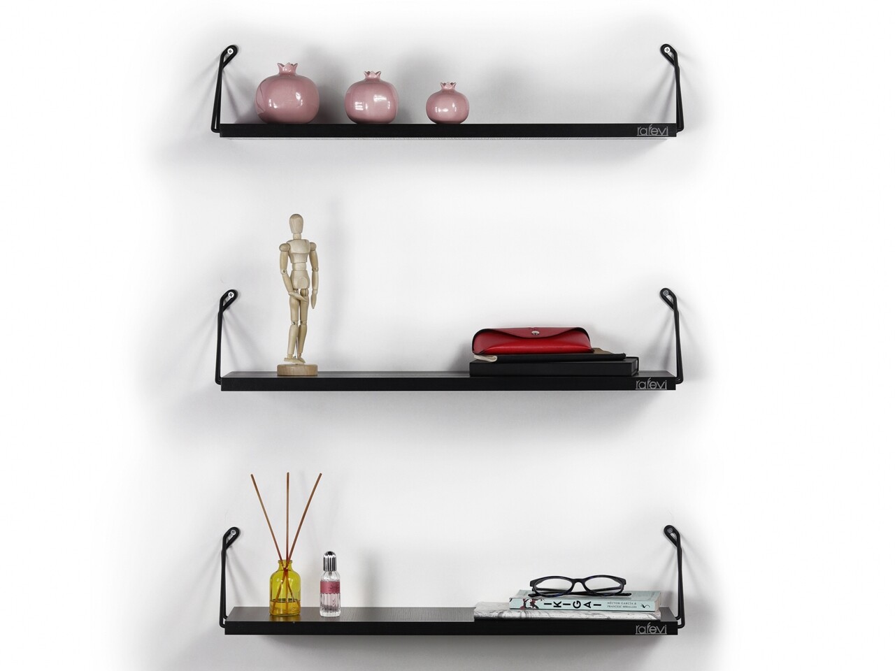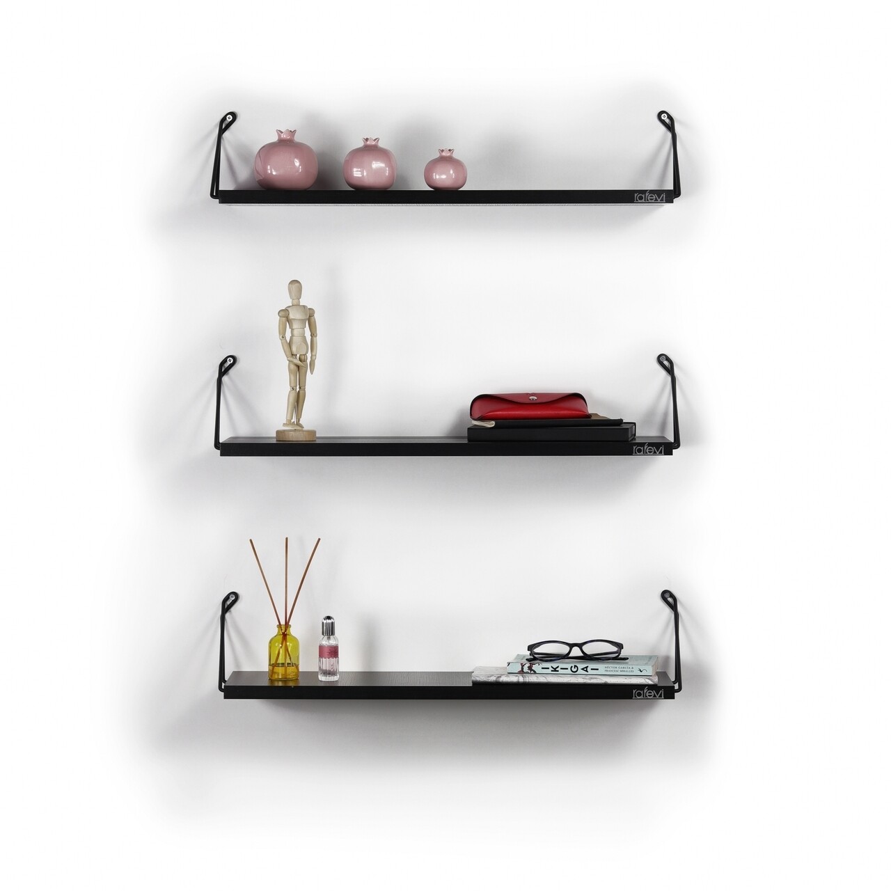 Set 3 rafturi de perete Rafevi Altai, 60 x 18 x 12.5 cm, PAL/metal, negru