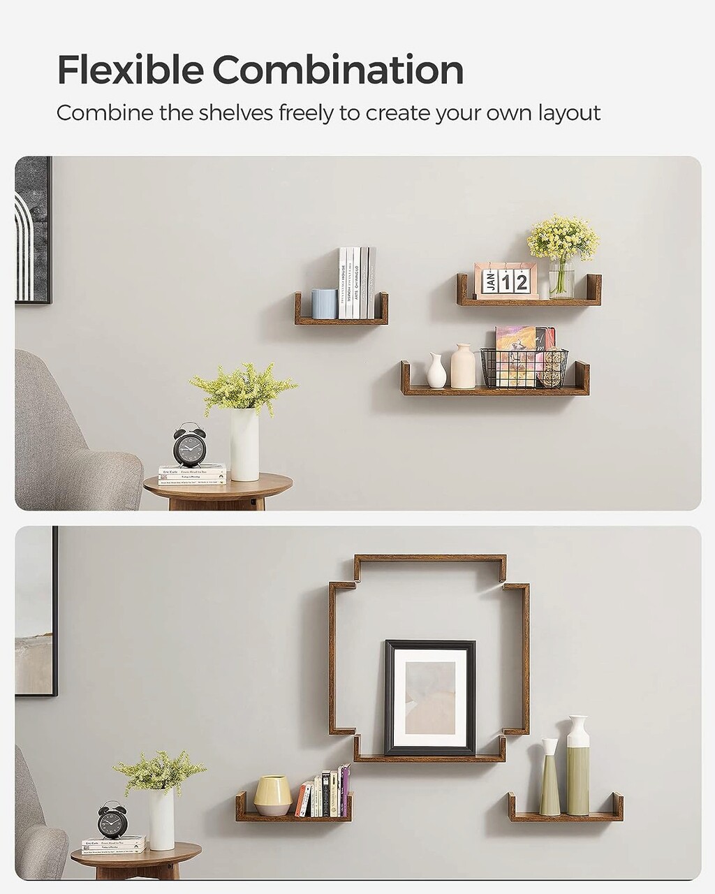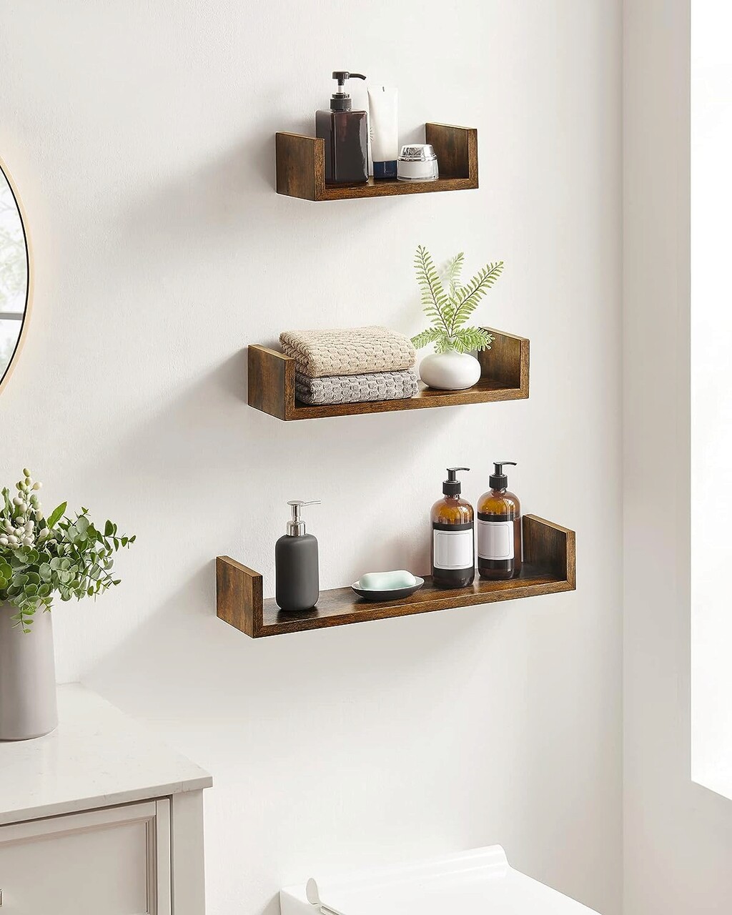 Set 3 rafturi de perete, Songmics, 30/45/60 cm, PAL, maro rustic