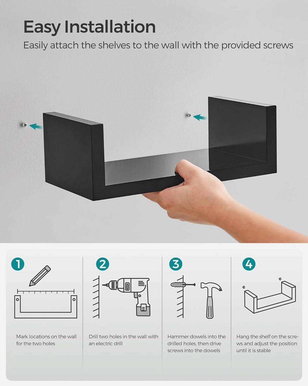 Montaj invizibil: Pentru instalarea rafturilor sunt furnizate carligele din spate si suruburile de expansiune, le puteti monta in sus sau in jos dupa cum doriti; acest set de 3 rafturi de depozitare va asigura o stabilitate de neclintit pana la 3 kg, 4 kg si 5 kg.