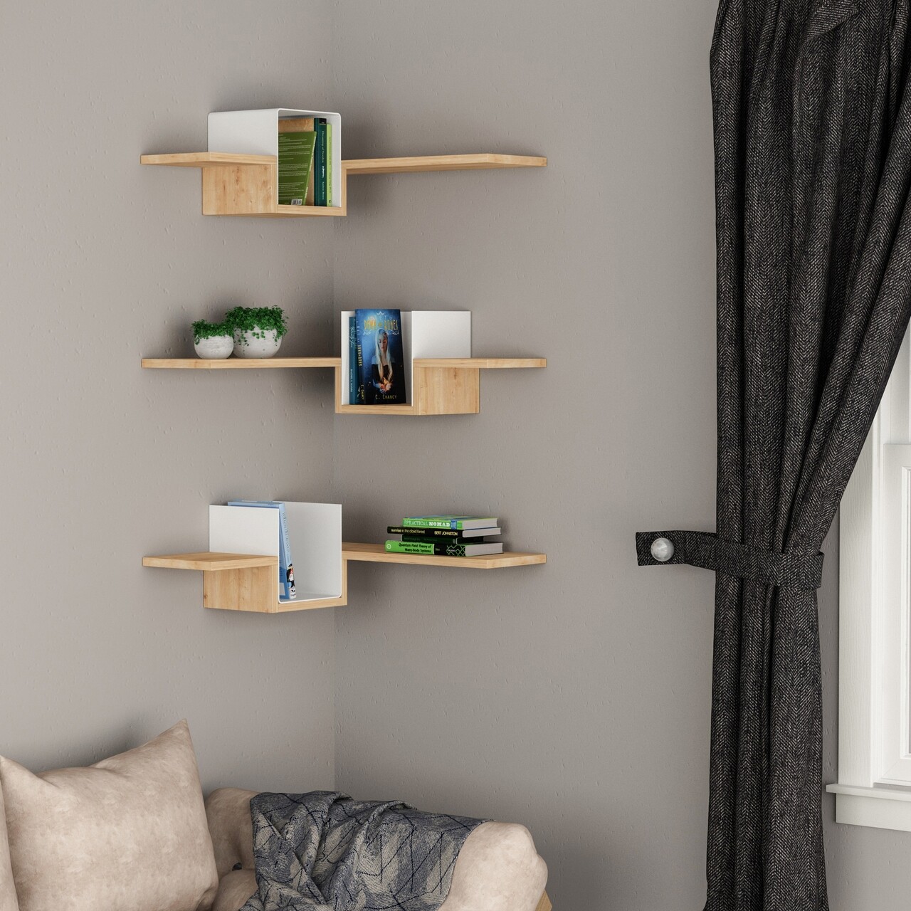 Set 3 rafturi pentru perete Ales Corner, Decortie, 58x58x30 cm, bej/alb