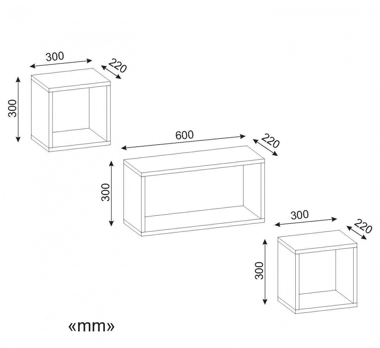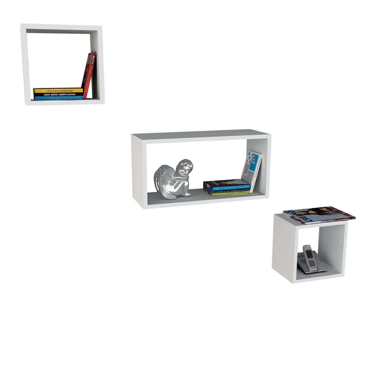 Set 3 rafturi pentru perete, Wooden Art, Box White
